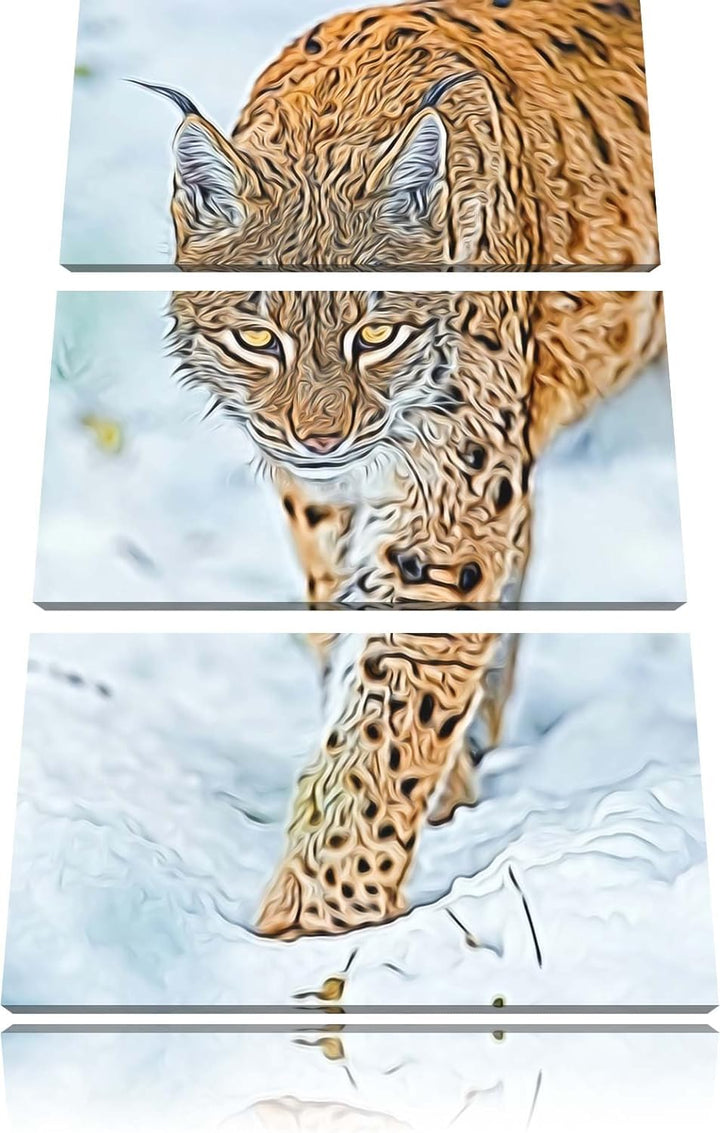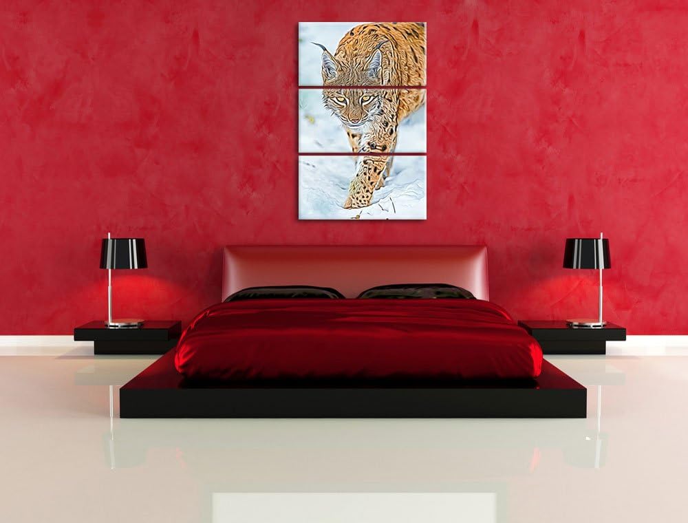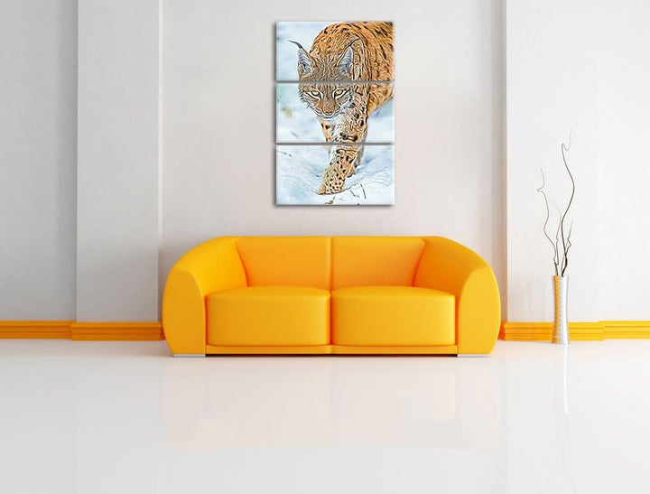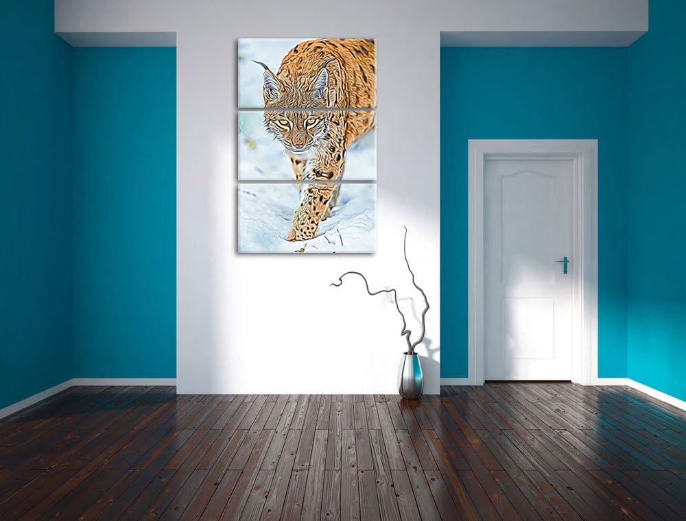 wachsamer Luchs im Schnee Spezial 3-Teiler Leinwandbild 120x80 Bild auf Leinwand, XXL riesige Bilder