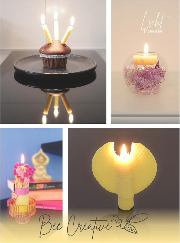 - 🍯 ECHTES BIENENWACHS AUS DEUTSCHLAND – Geniesse den typischen Honigduft und das warme Licht handgemachter Bienenwachskerzen. Unser Wachs ist naturrein, frei von Paraffin und künstlichen Zusätzen – für ein gesundes Raumklima und ein Stück Natur