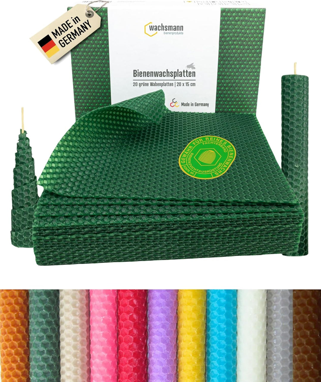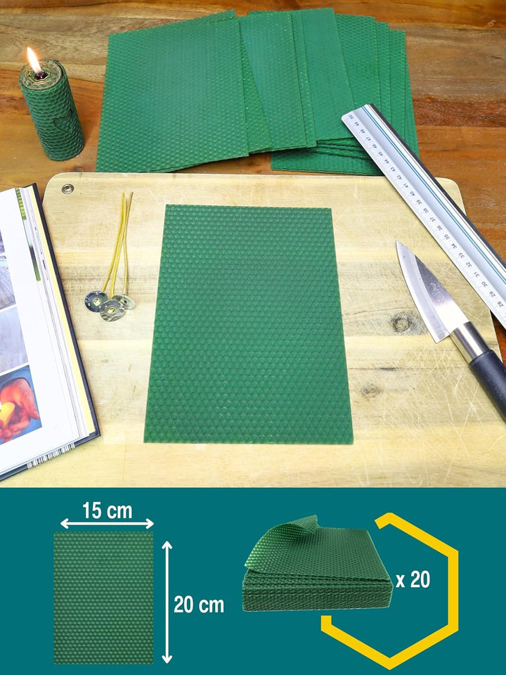 - 🐝 20 GRÜNE BIENENWABEN-WACHSPLATTEN: 100 % reines Bienenwachs - Platten à 20 x 15 cm. Beliebig teilbar, leicht zu schneiden.