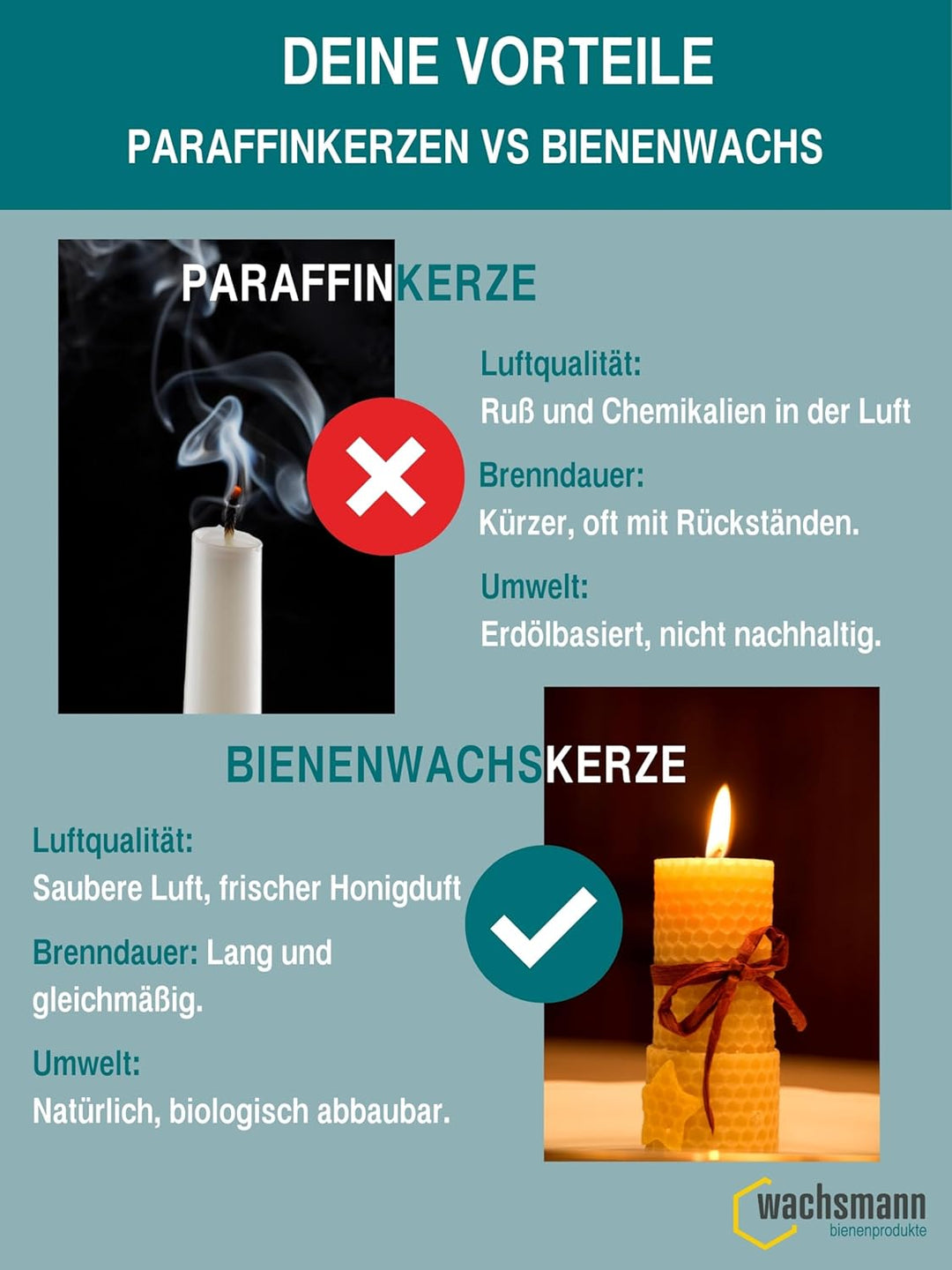 - 🐝 HONIGDUFT LIEGT IN DER LUFT: Durch die Reinheit des Bienenwachses duftet er herrlich und schafft eine gemütliche Atmosphäre. Tolle Kerzen einfach selber machen.