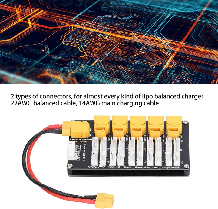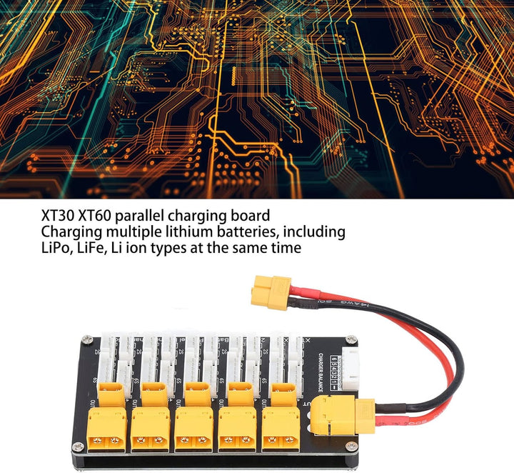 - GLEICHZEITIGES LADEN: XT30 XT60 Parallel-Ladeplatine zum gleichzeitigen Laden mehrerer Lithium-Akkus, einschliesslich LiPo-, LiFe-, Li-Ion-Typen