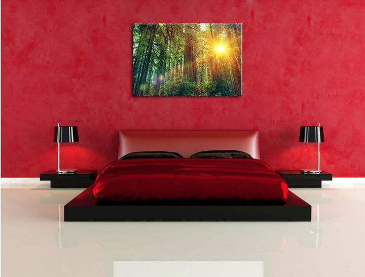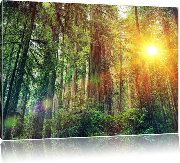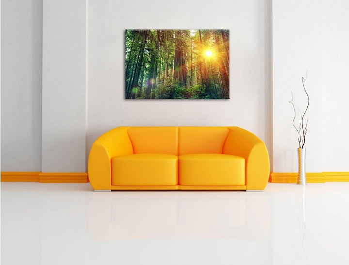 Wald bei Sonnenlicht, Format: 100x70 auf Leinwand, XXL riesige Bilder fertig gerahmt mit Keilrahmen,