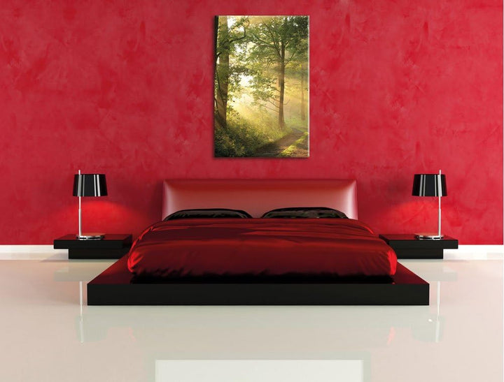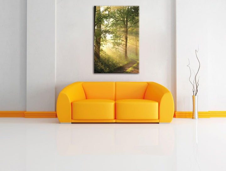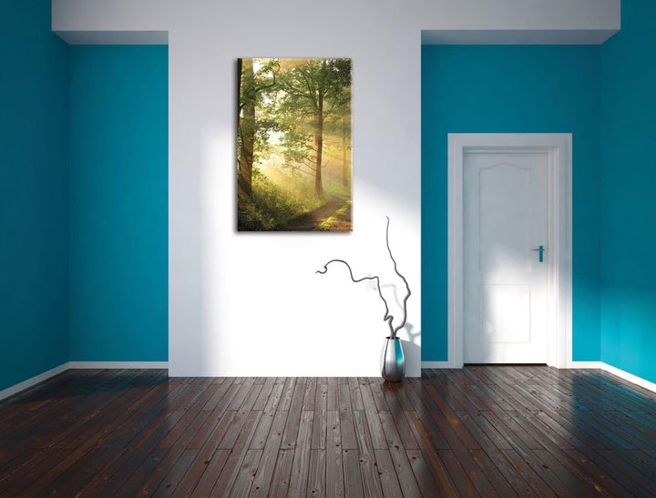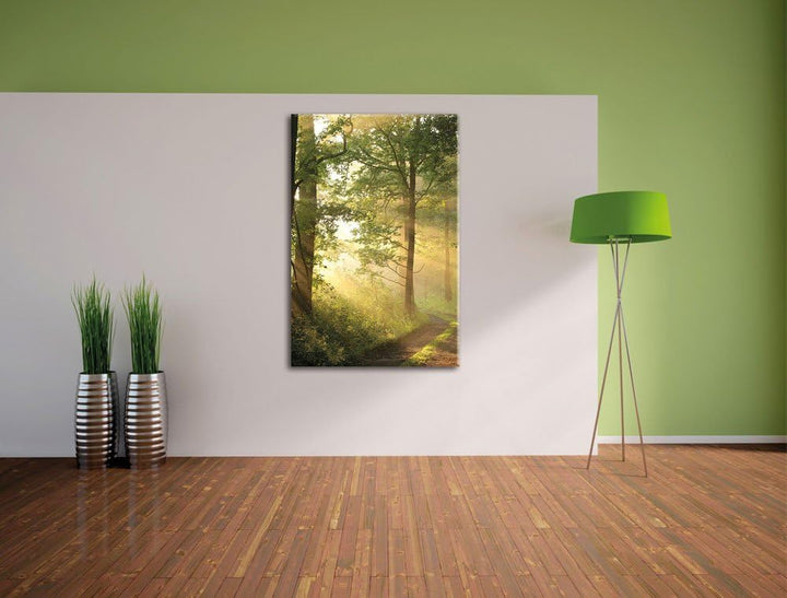 Waldweg im Winter, Format: 100x70 auf Leinwand, XXL riesige Bilder fertig gerahmt mit Keilrahmen, Ku