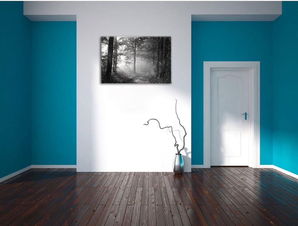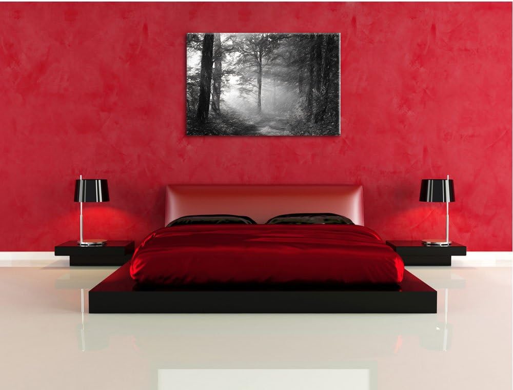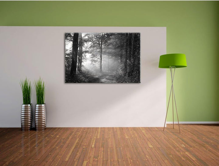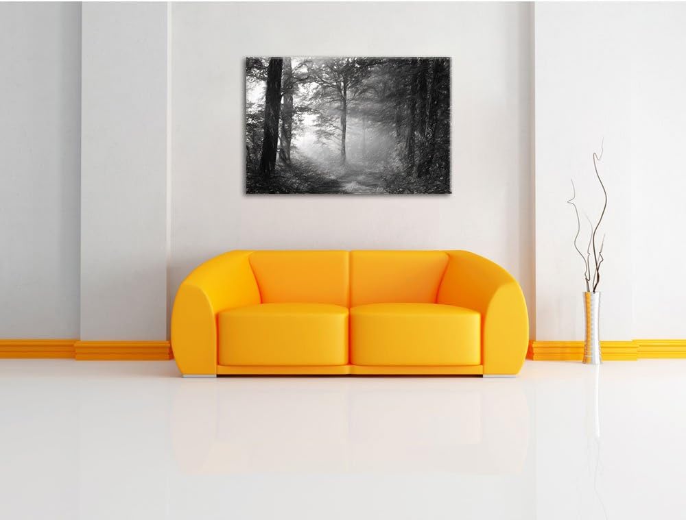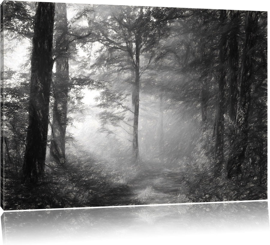 Waldweg Kohle Effekt, Format: 100x70 auf Leinwand, XXL riesige Bilder fertig gerahmt mit Keilrahmen,