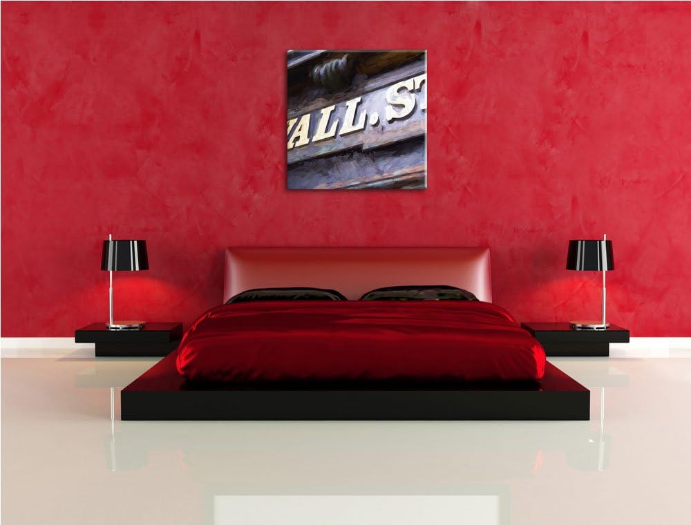 Wall Street Schild, Format: 70x70 auf Leinwand, XXL riesige Bilder fertig gerahmt mit Keilrahmen, Ku