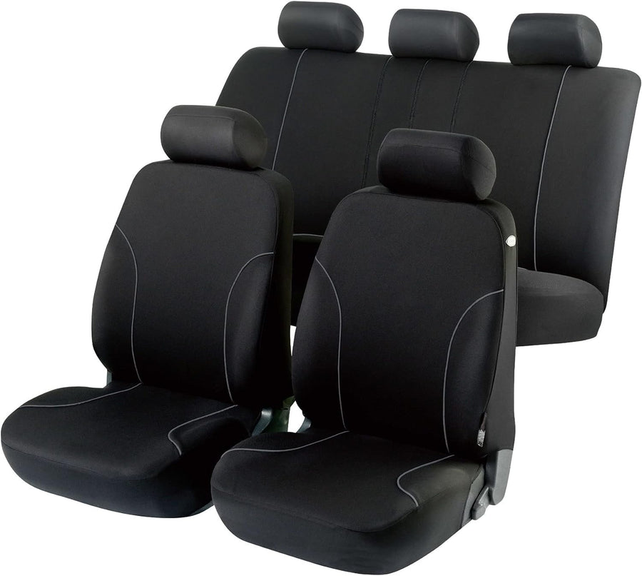 - Lieferumfang: 2 Vordersitzbezüge 2tlg, 1 Rücksitzbezug 5tlg, 5 Kopfstützenbezüge