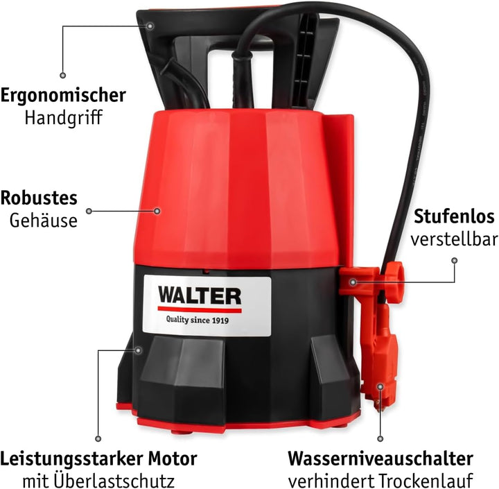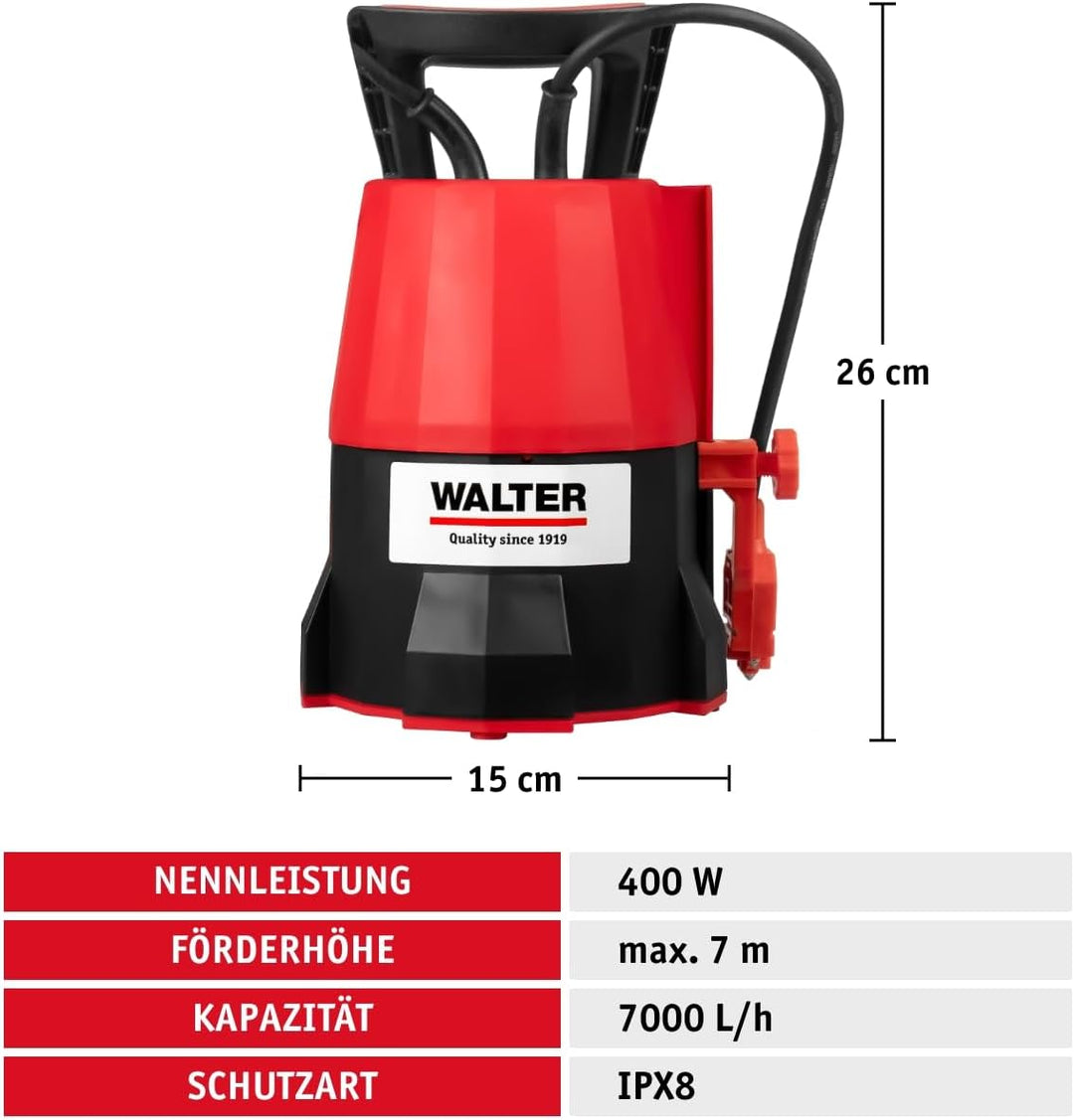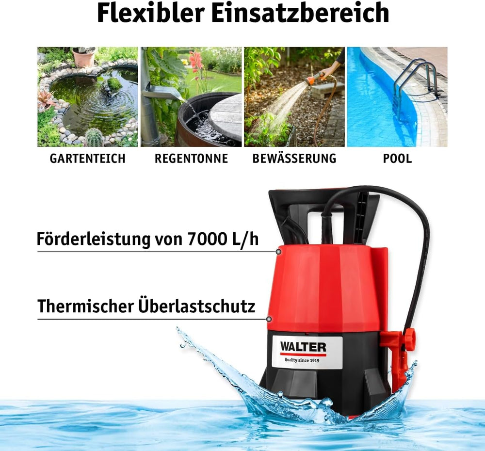 - Leistungsstarke Wasserpumpe: 400 W Motor mit 7000 L/h Förderleistung für schnelles Entleeren von Pools, Kellern und Regentonnen