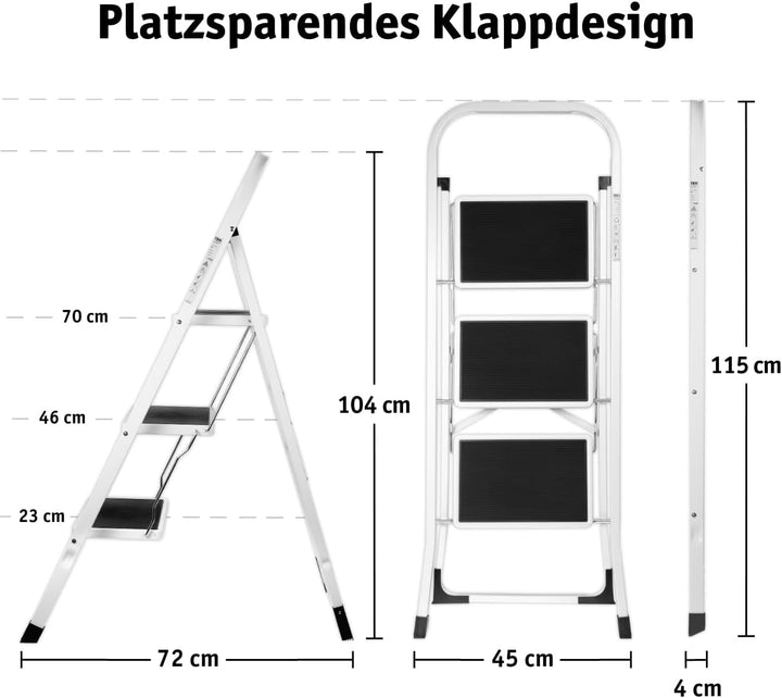 - Must-Have für jeden Haushalt: Diese handliche und platzsparende Klappleiter ist unverzichtbar für Aufgaben im Innen- und Aussenbereich.