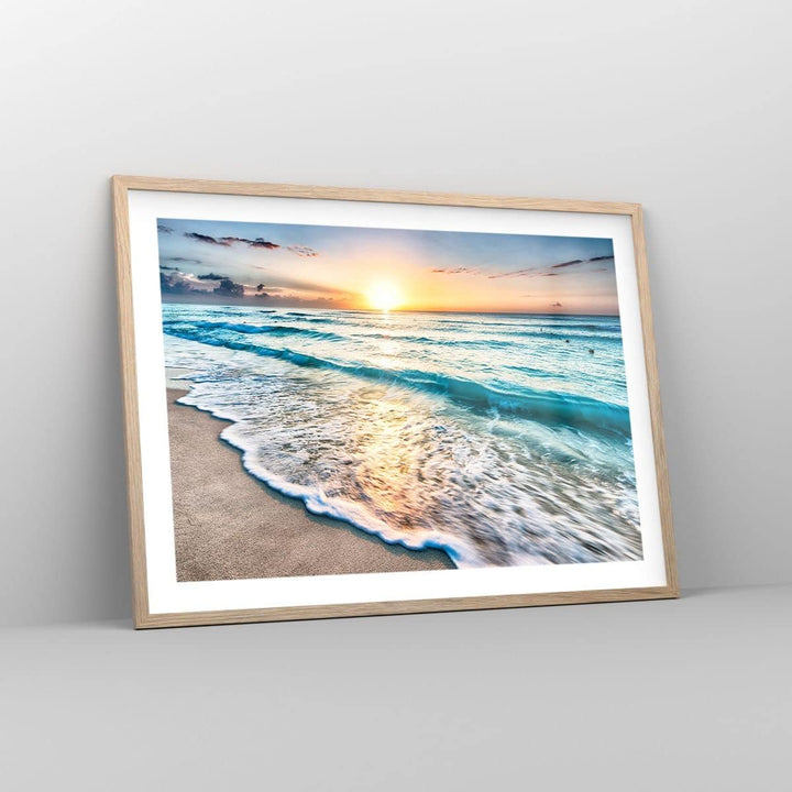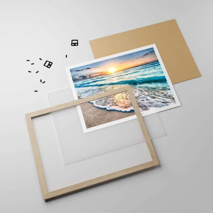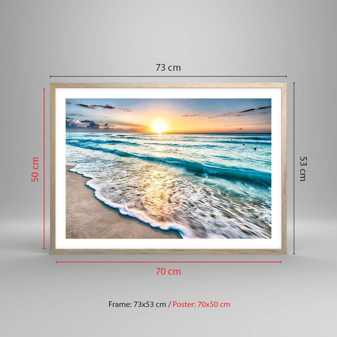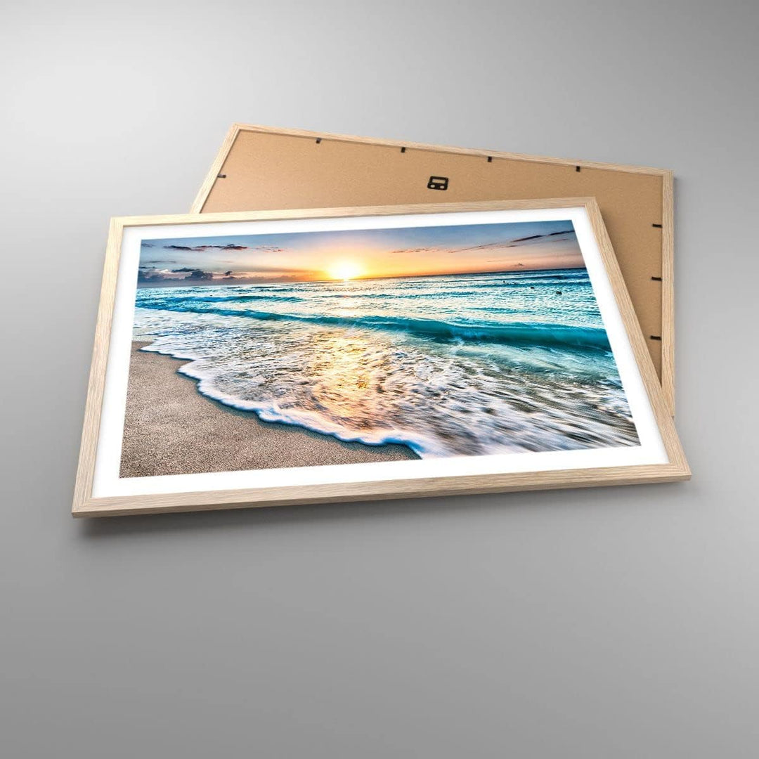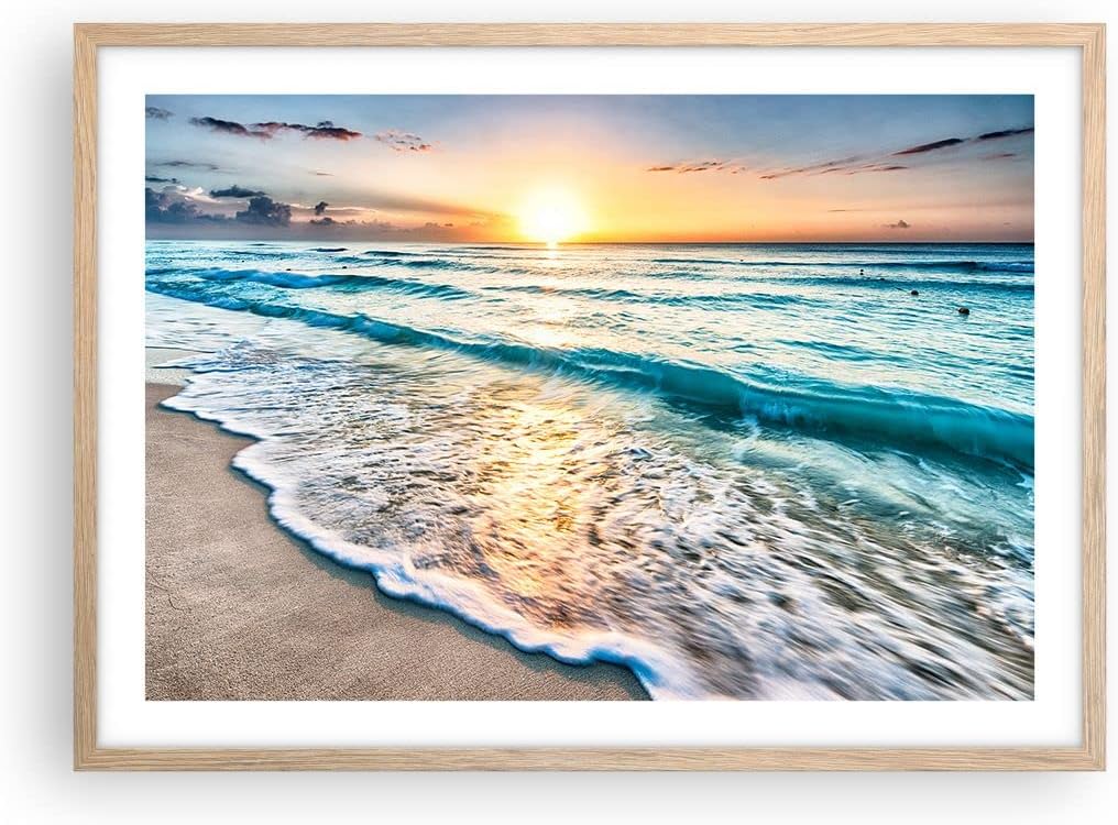 Wandposter Art Prints 70x50cm Poster Rahmen helle Eiche Meer Welle Strand Küche Wanddeko Bild Wand K