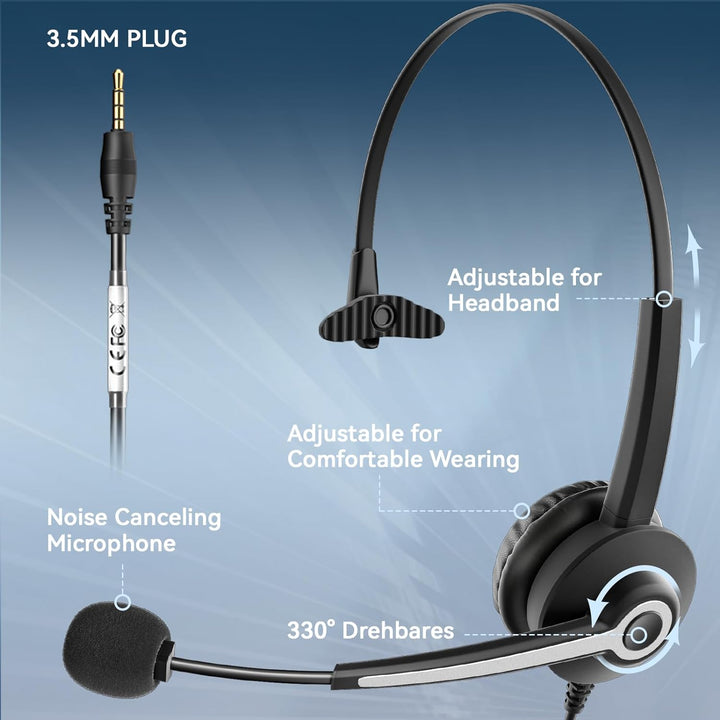 - ▶ 【Warum uns wählen?】Wir bieten 45 Tage Geld-zurück-Garantie und 24 Monate Garantie. Ihre 100 %ige Zufriedenheit ist unser grösstes Ziel. Das 3,5-mm-Headset von Wantek eignet sich perfekt für Skype-Chat, Callcenter, Büro, Geschäft,