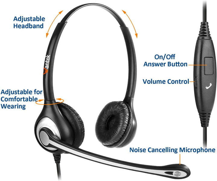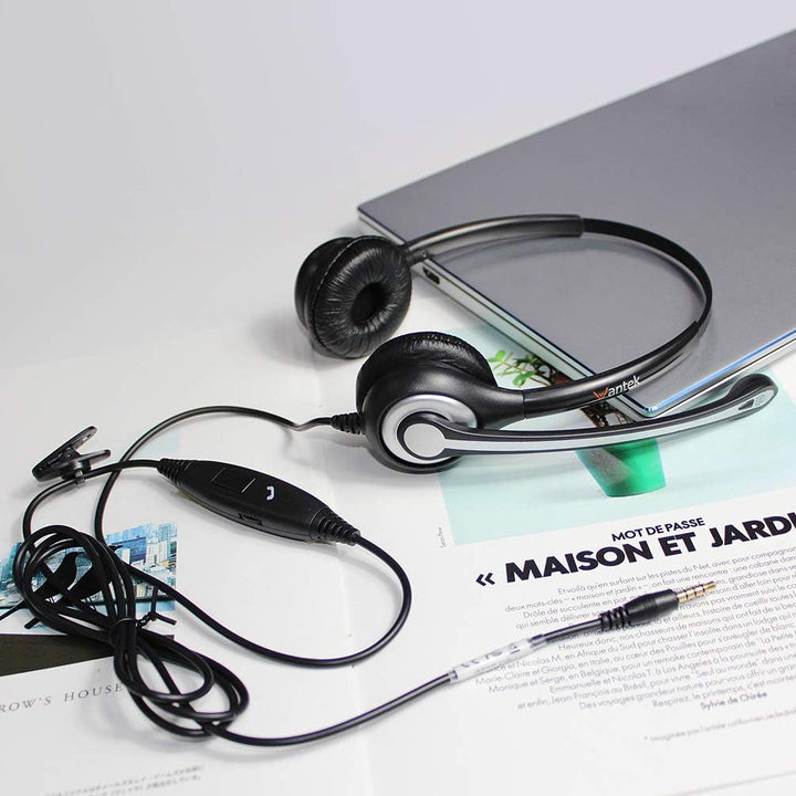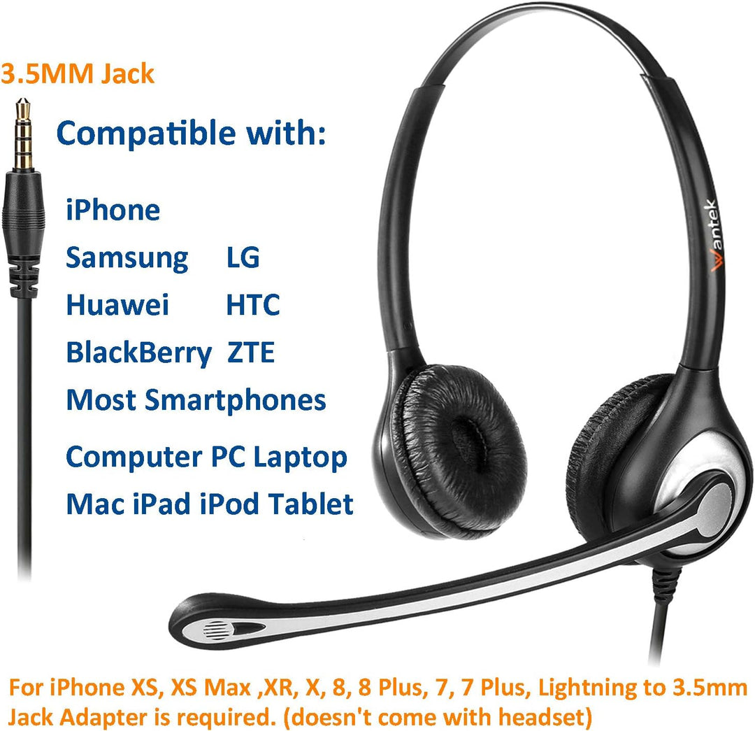 Wantek Headset Handy Binaural mit Noise Cancelling Mikrofon, Smartphone Kopfhörer für iPhone Samsung
