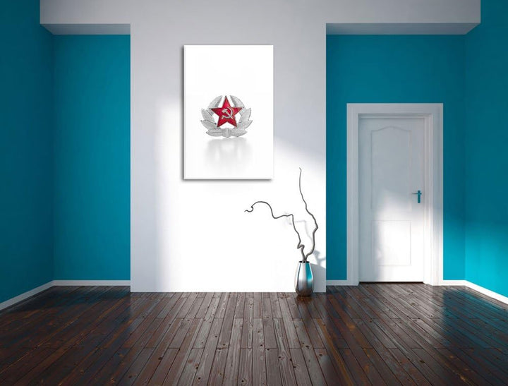 Wappen der UdSSR schwarz/weiss Format: 100x70 auf Leinwand, XXL riesige Bilder fertig gerahmt mit Ke