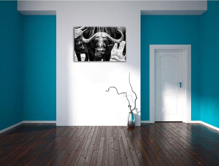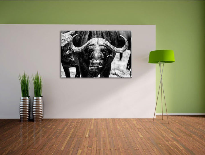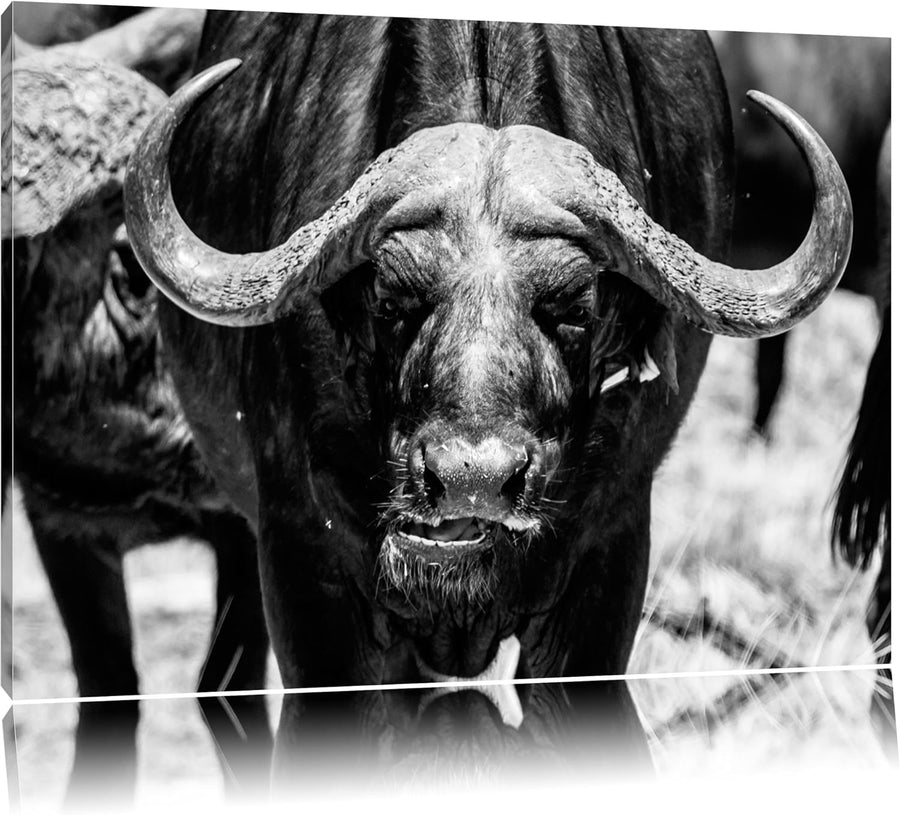 Wasserbüffel Schwarz/weiss Format: 100x70 auf Leinwand, XXL riesige Bilder fertig gerahmt mit Keilra