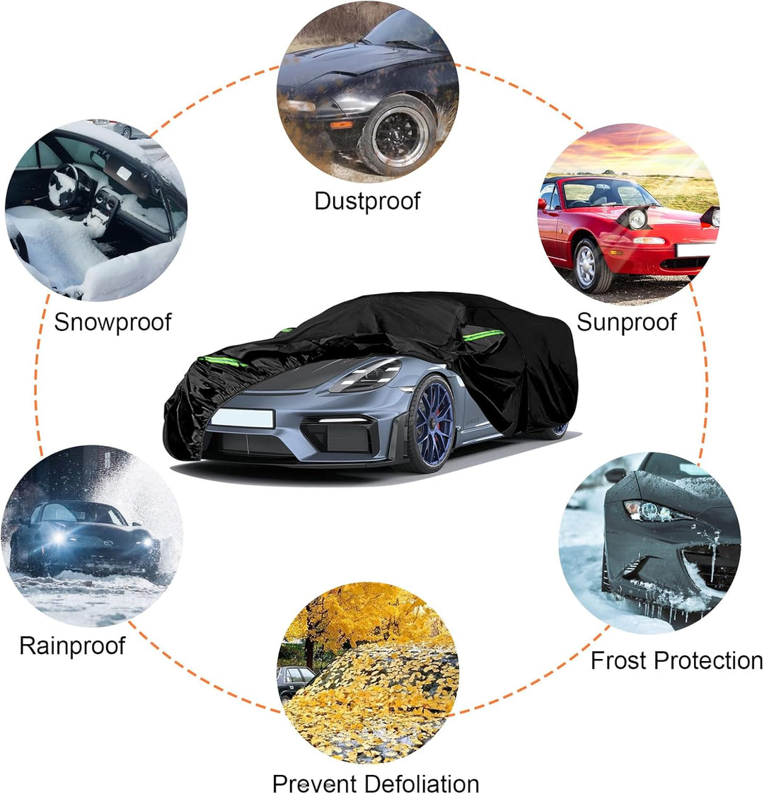 • Allwetter-Autoabdeckung: Diese Autoabdeckungen können alles bewältigen, egal ob heisse Sonne oder kaltes Wetter. Das starke Material hält Ihr Auto sicher vor Sonne, Schnee, Frost, Regen, Hagel, Sand, Staub, Blättern, Ästen und Vögeln
