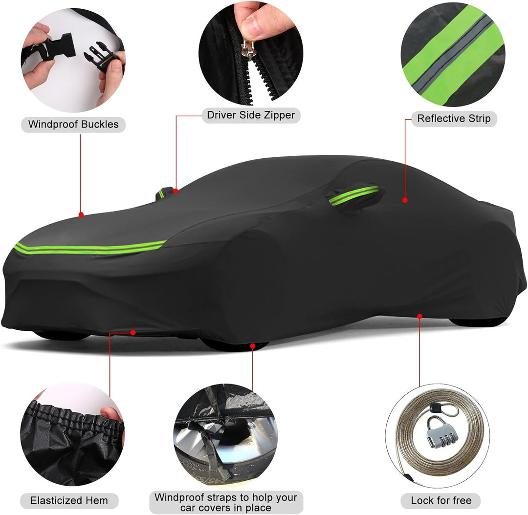 - Allwetter-Autoabdeckung: Diese Autoabdeckungen können alles bewältigen, egal ob heisse Sonne oder kaltes Wetter. Das starke Material hält Ihr Auto sicher vor Sonne, Schnee, Frost, Regen, Hagel, Sand, Staub, Blättern, Ästen und Vögeln