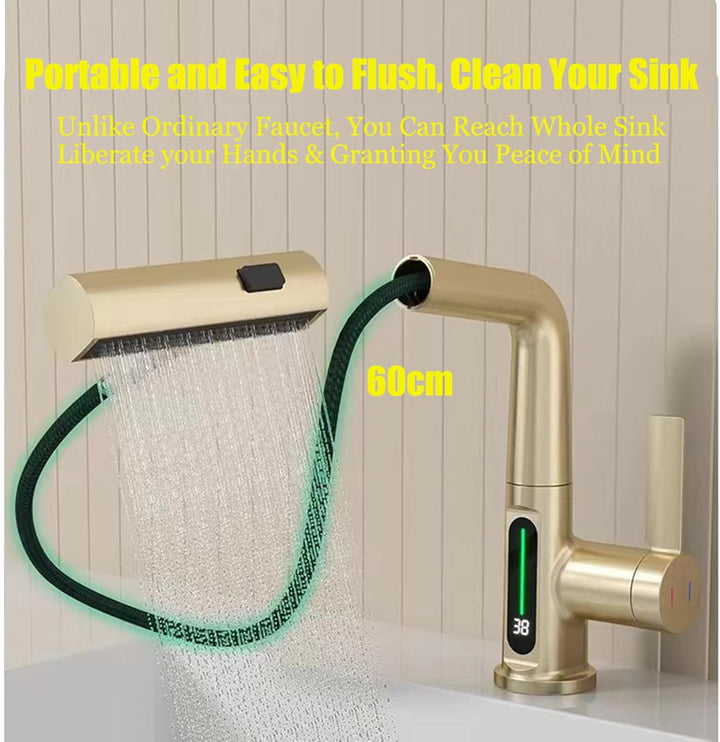 - 【Temperatur in Echtzeit Sichtbar】 Mischbatterie waschbecken mit Temperaturanzeige, fortschrittliche Wasserkraft-Technologie erfordert keine externe Stromversorgung, um eine Echtzeit-Anzeige der Temperatur der Mischbatterie zu realisieren. Mit drei