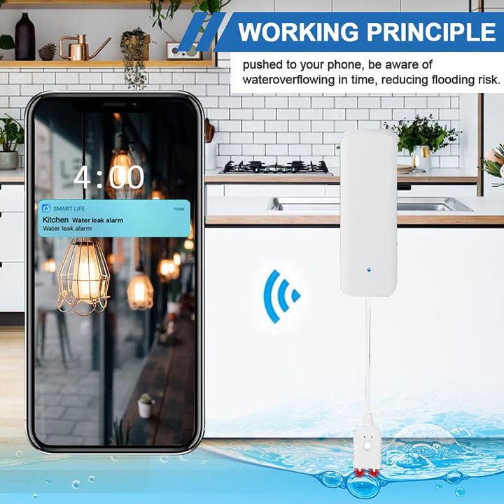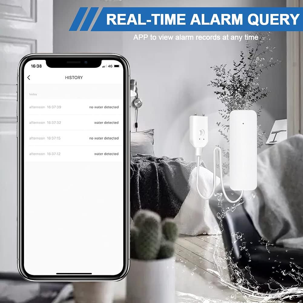 - 【SCHNELLBENACHRICHTIGUNG】Sobald der Wassermelder austretendes Wasser erkennt, eine Alarmmeldung wird innerhalb von 2-10 Sekunden an das Smartphone gesendet (abhängig von der Netzwerkgeschwindigkeit).