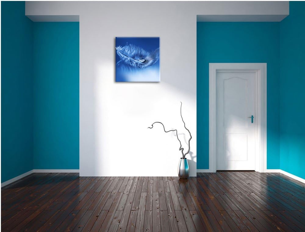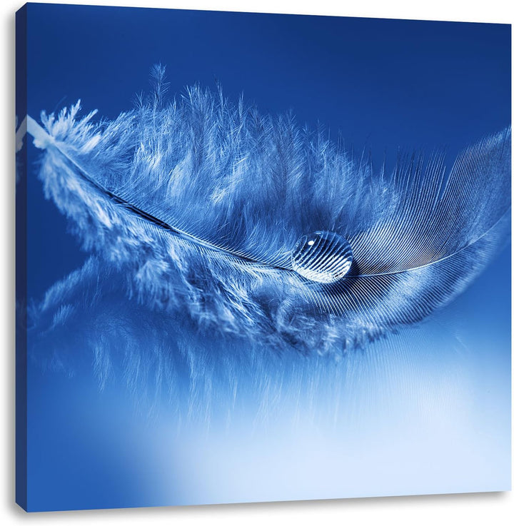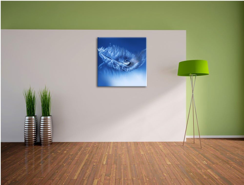 Wassertropfen auf Feder, Format: 70x70 auf Leinwand, XXL riesige Bilder fertig gerahmt mit Keilrahme