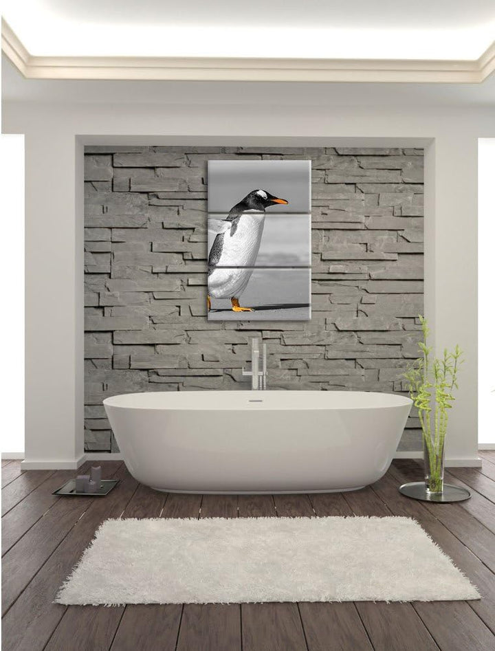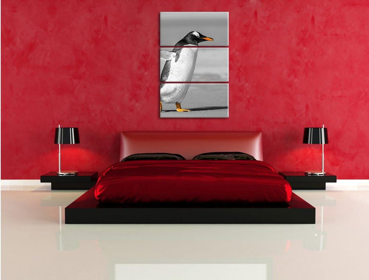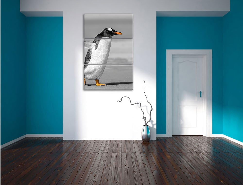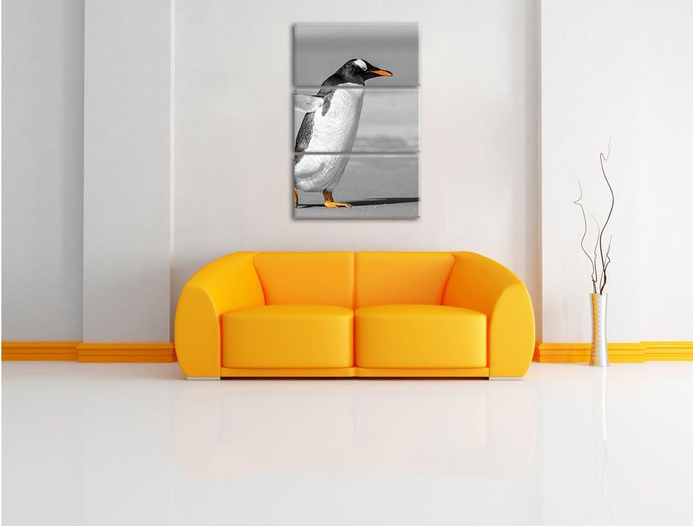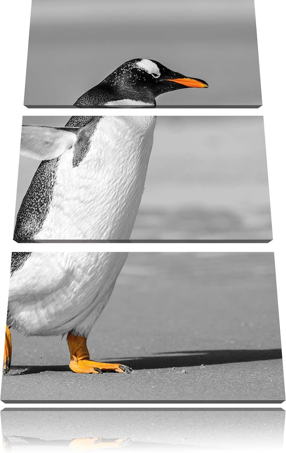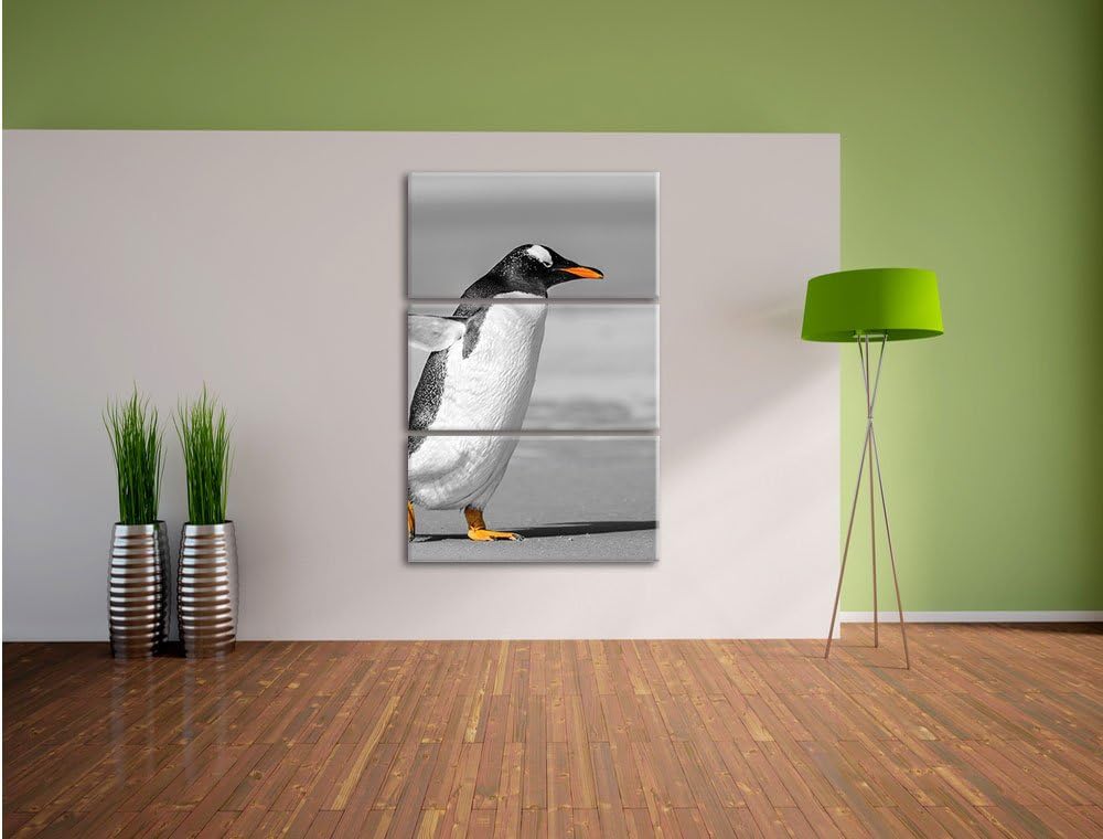 watschelnder Pinguin am Strand schwarz/weiss 3-Teiler Leinwandbild 120x80 Bild auf Leinwand