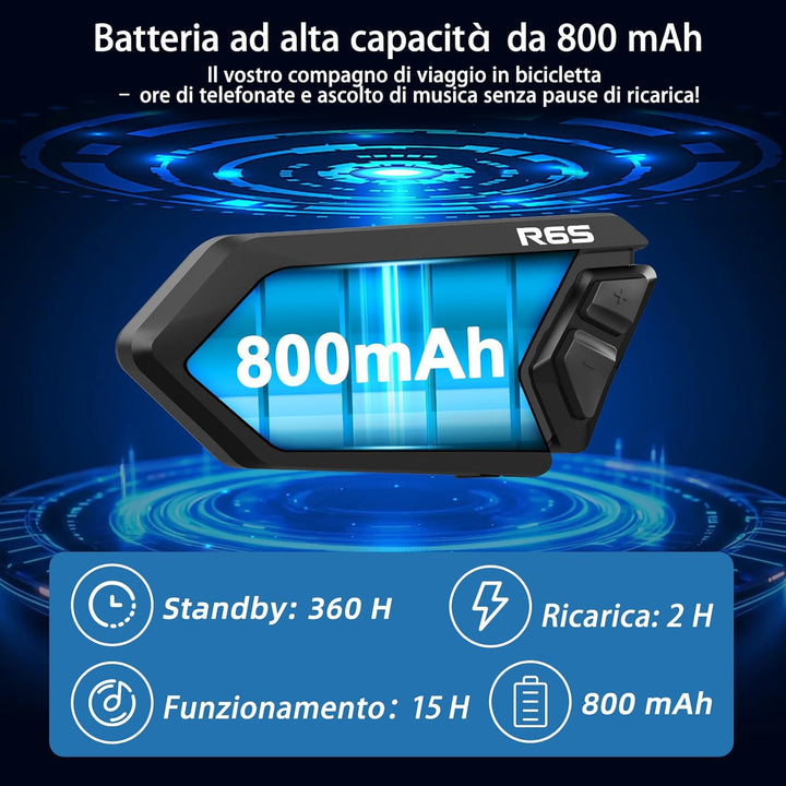- 【Lange Arbeitszeit】: R6S Headset Motorradhelm Eingebauter 800 mAh Lithium Akku mit Typ-C Schnittstelle, Ladezeit nur 2,5 St, kontinuierliche Gesprächszeit 15 St, Standby 300 St