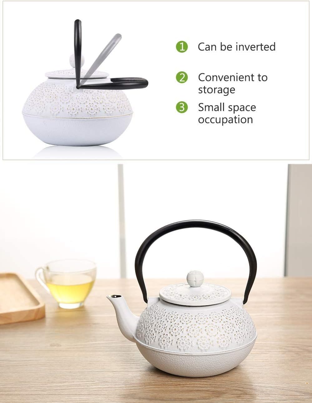 - 【Grösse】 Die Grösse und das Gewicht dieser Eisen-Teekanne ist genau richtig. Volle Wasserkapazität 900 ml (aber es wird empfohlen, 75% - 80% Wasser zu giessen. ), geeignet für alle Arten von duftenden Tee und losen Tee.