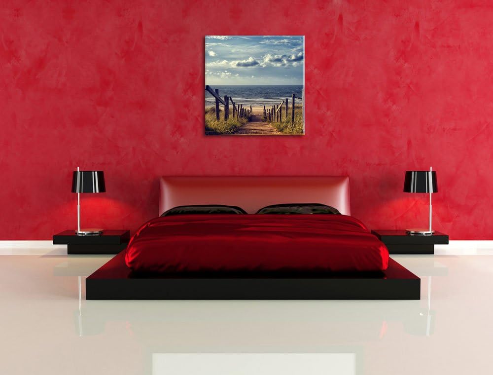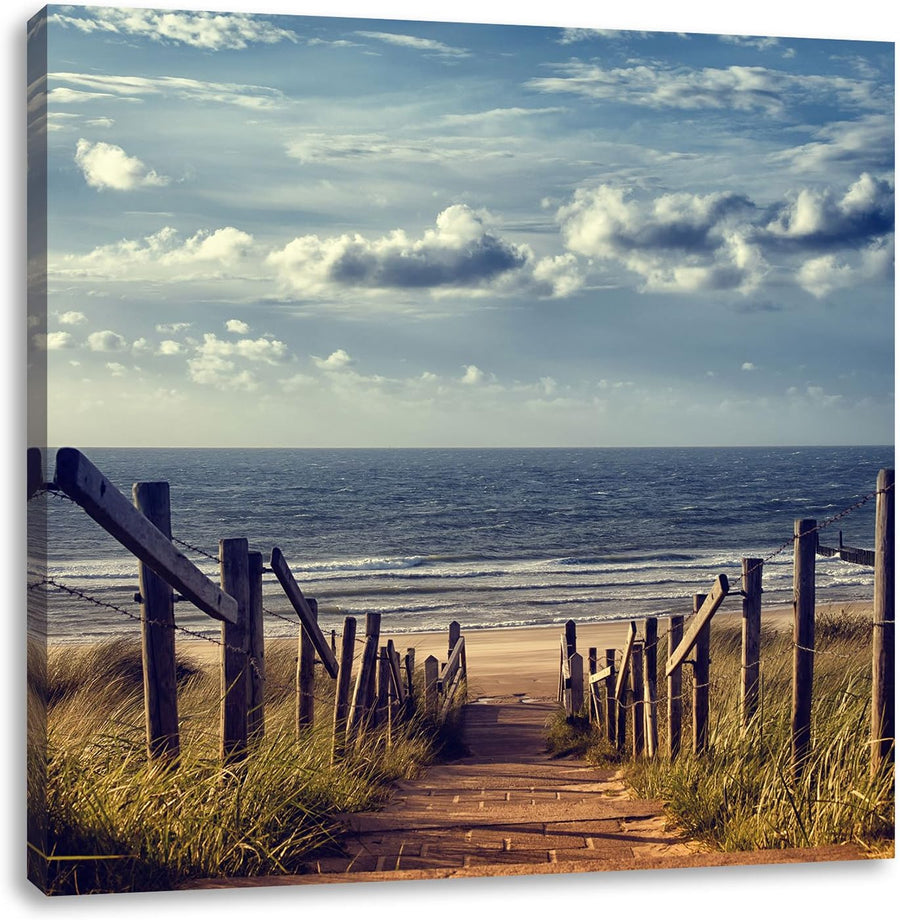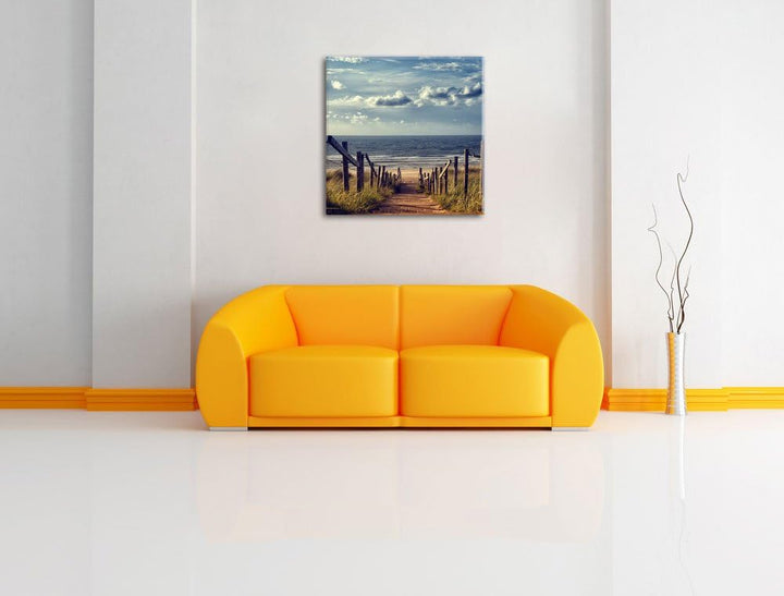 Weg zum Strand am Meer, Format: 70x70 auf Leinwand, XXL riesige Bilder fertig gerahmt mit Keilrahmen