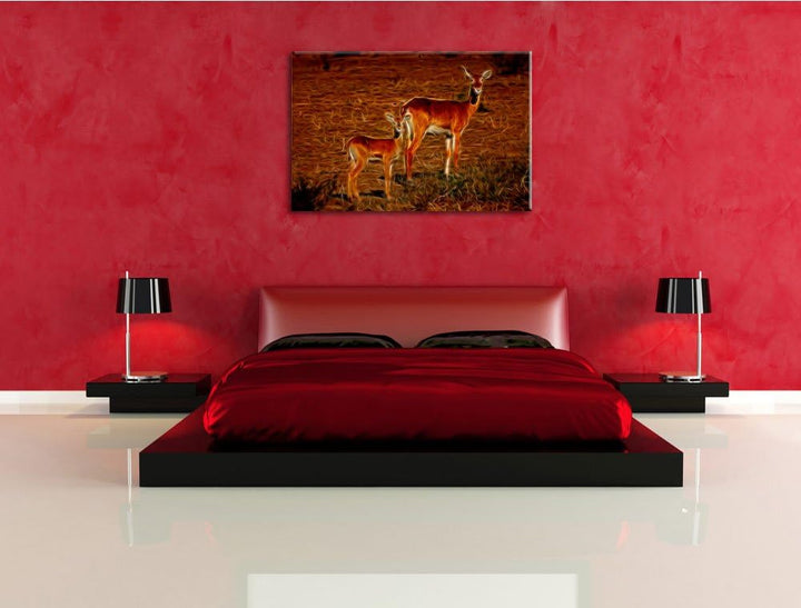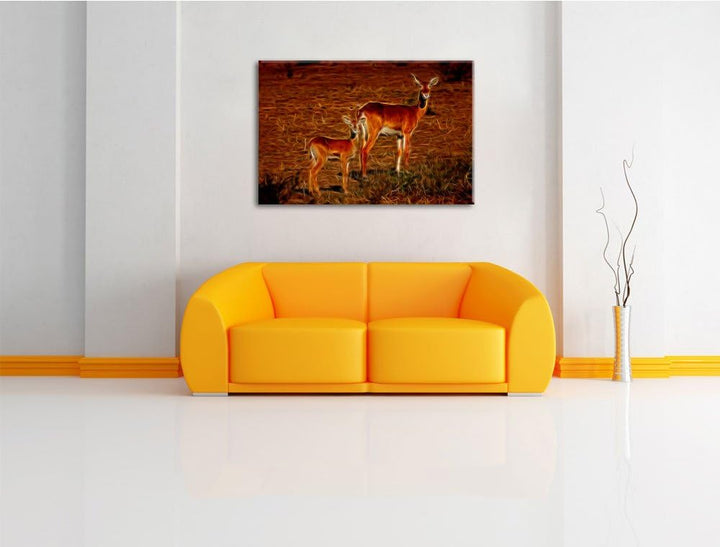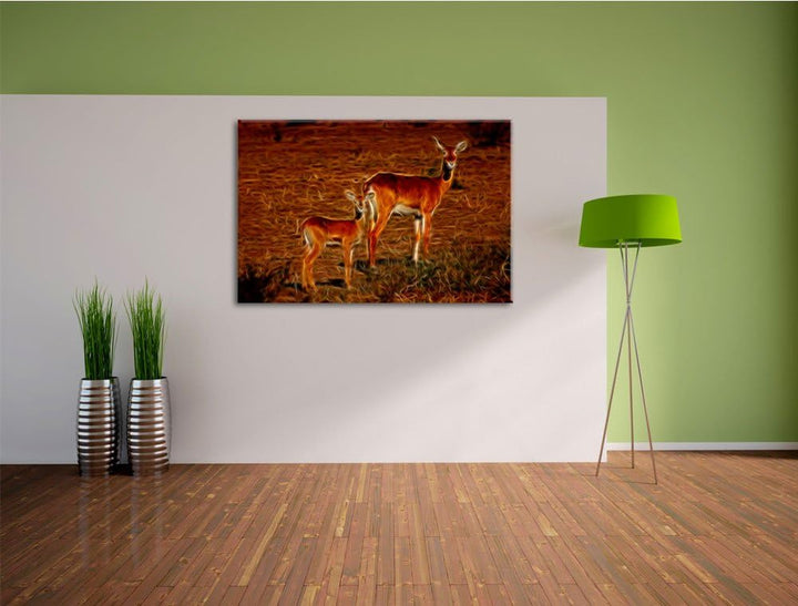 weibliche Indische Gazelle mit Jungtier Deluxe Format: 100x70 cm auf Leinwand, XXL riesige Bilder fe