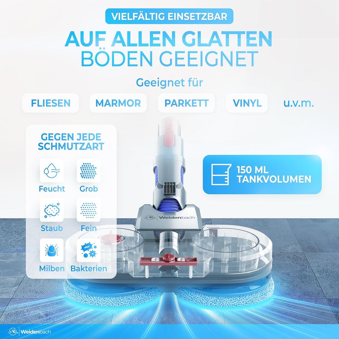 - ππΓππππ πππππππππππππππ: Mit dem abnehmbaren 150-ml-Wassertank kΓΆnnen Sie die Wassermenge individuell anpassen β ideal fΓΌr die Nass- oder Trockenreinigung empfindlicher BΓΆden. Perfekte