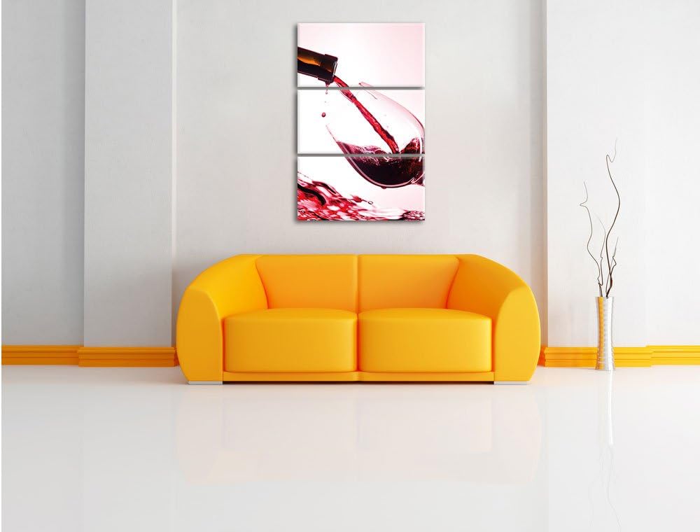 Wein 3-Teiler Leinwandbild 120x80 Bild auf Leinwand, XXL riesige Bilder fertig gerahmt mit Keilrahme
