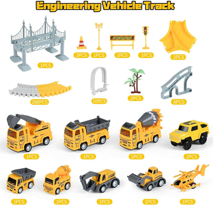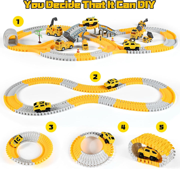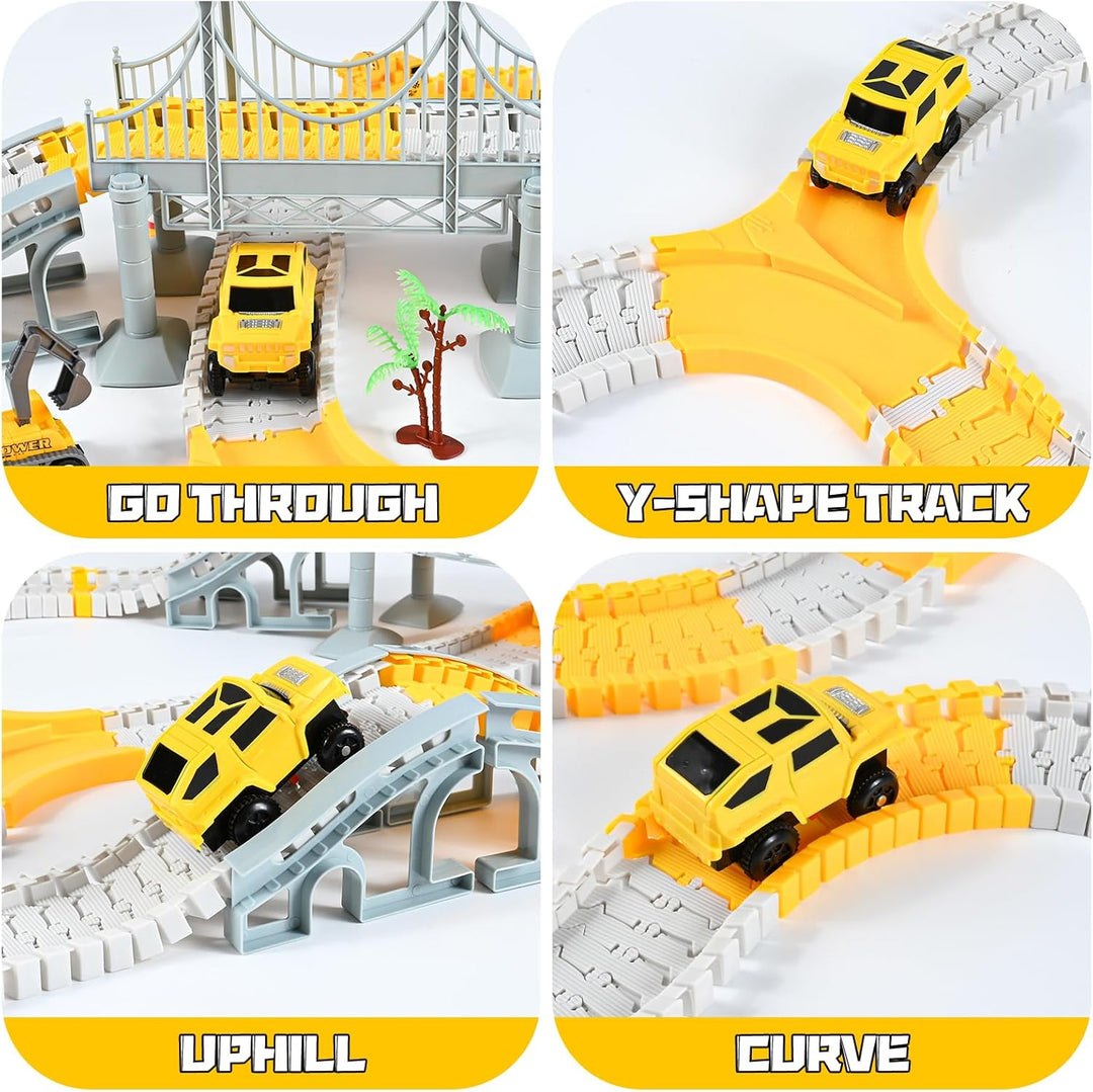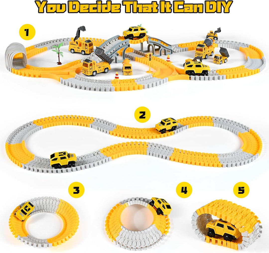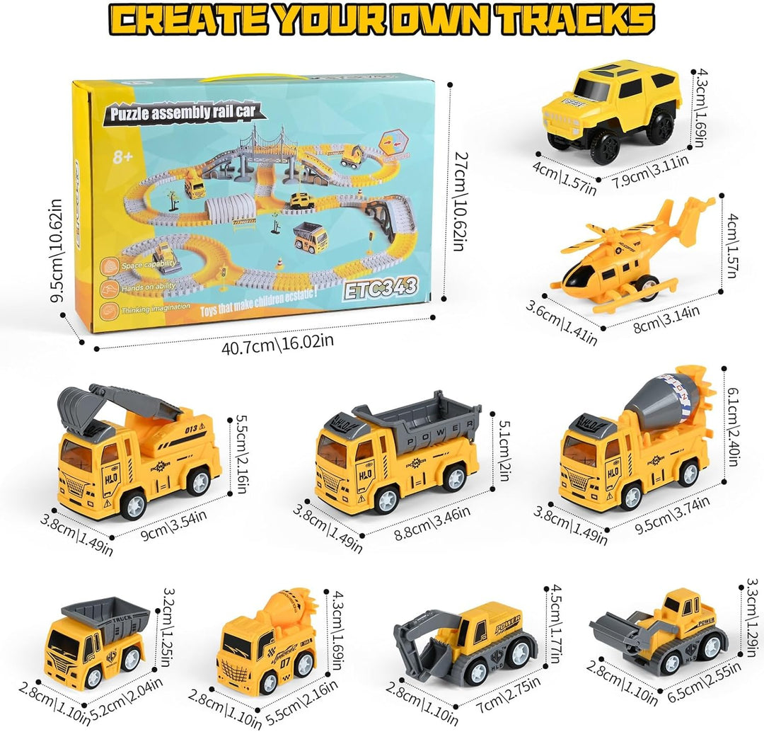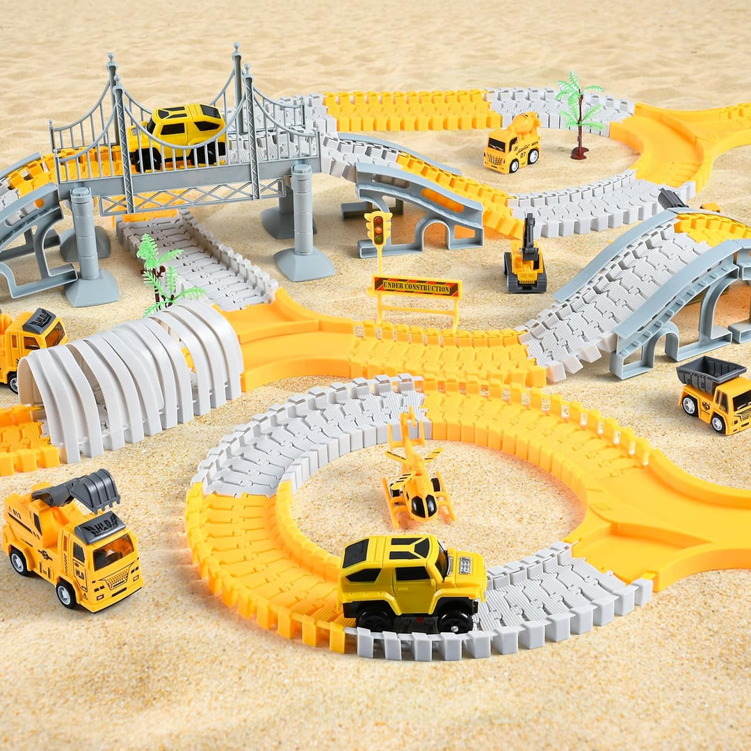 - đď¸ăKonstruktionsspielzeug Rennbahn-SetăUnser Bauspielzeug-Set umfasst 288 flexible Streckenteile, 10 Tunnelteile, 8 Rampen, 7 Mini-Baufahrzeuge, 5 Verkehrsschilder, 2 Y-fĂśrmige Schienen, 2 Bäume, 2 Rennwagen, 1 Hubschrauber und eine BrĂźcke.