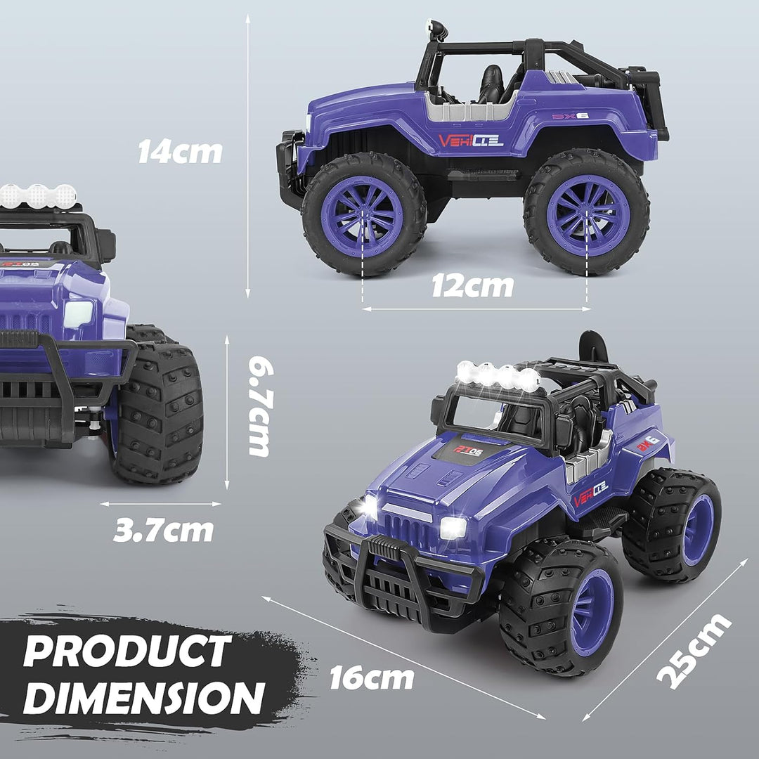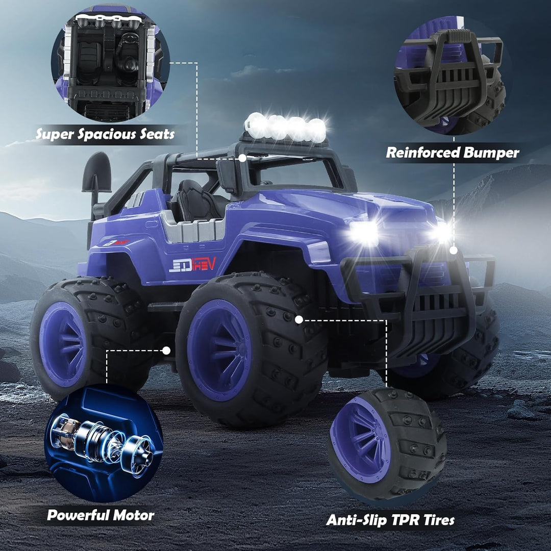 - RC-Autokonfiguration: 2WD Geländewagen im Massstab 1:16 mit kollisionssicherer Stossstange vorne, Sandschaufel hinten montierbar und LED-Scheinwerfern vorne und oben. Perfekt zum Spielen drinnen, draussen oder nachts im Dunkeln. Begeistern Sie Kinder,