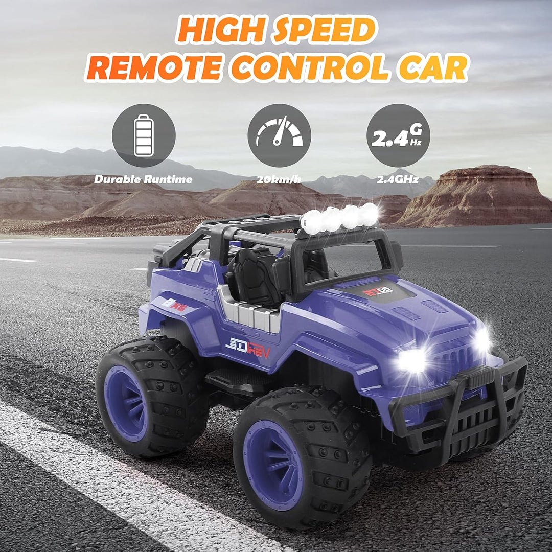- Hochwertiger Ferngesteuertes Auto: Die Karosserie des RC auto besteht aus hochwertigem ABS-Material, das ungiftig, geruchlos, sicher und umweltfreundlich ist. Er verfügt über rutschfeste TPR-Reifen, sodass er problemlos auf Sand, Gras, Schlamm,
