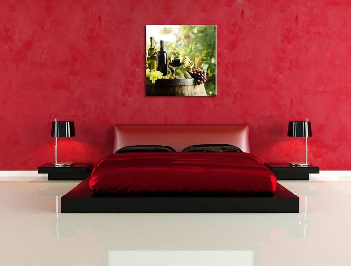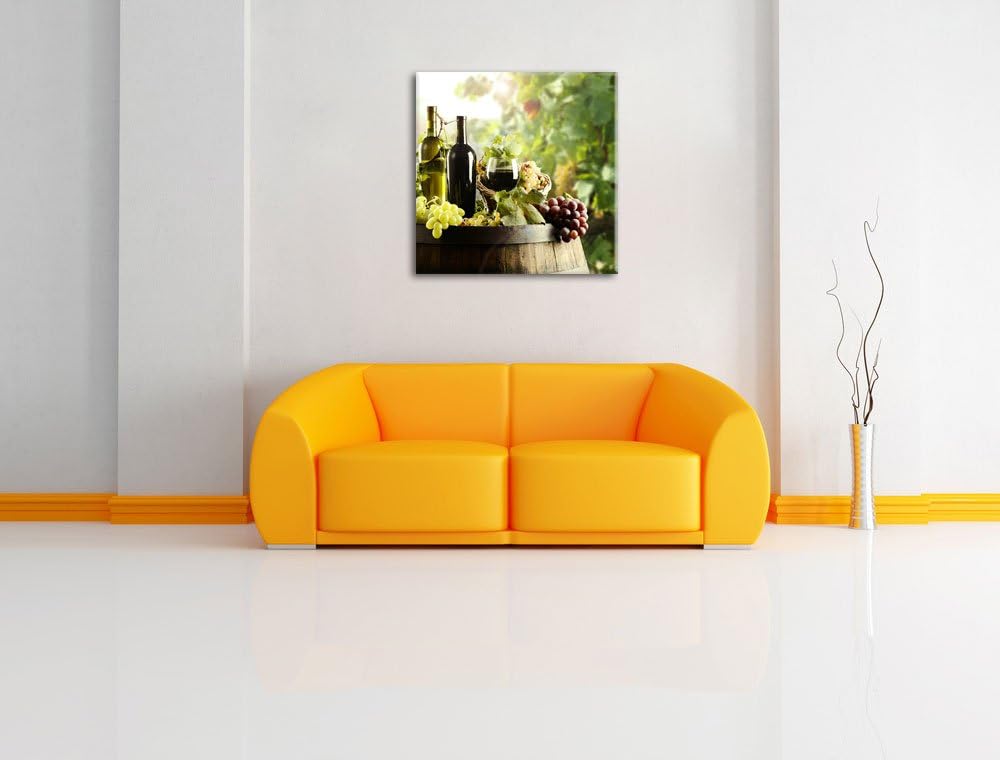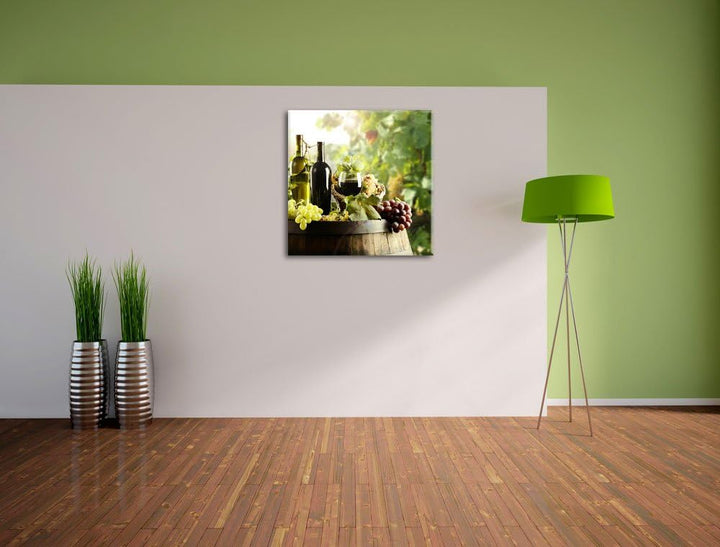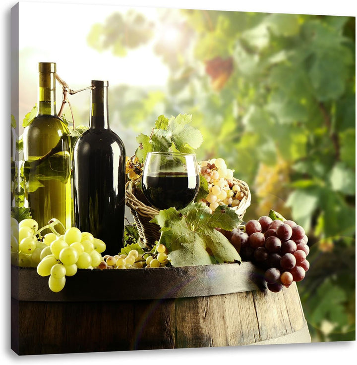 Weintrauben am Fass, Format: 70x70 auf Leinwand, XXL riesige Bilder fertig gerahmt mit Keilrahmen, K
