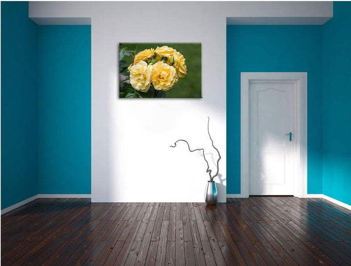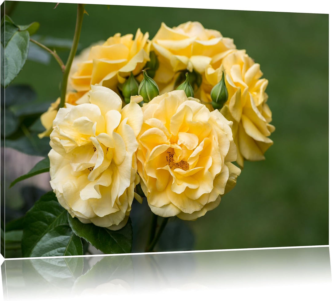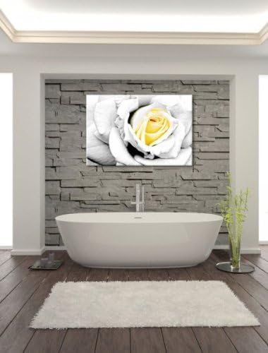 Weiss gelbe Rose Blumen USA Bild auf Leinwand, XXL riesige Bilder fertig gerahmt mit Keilrahmen. Kun