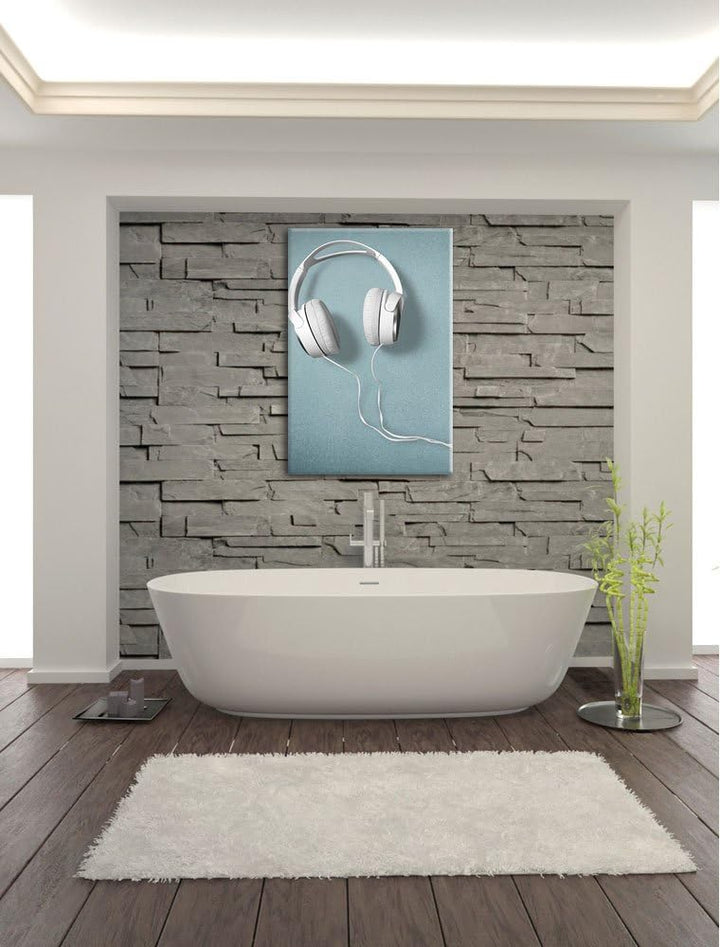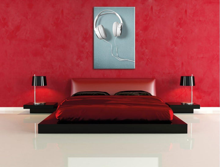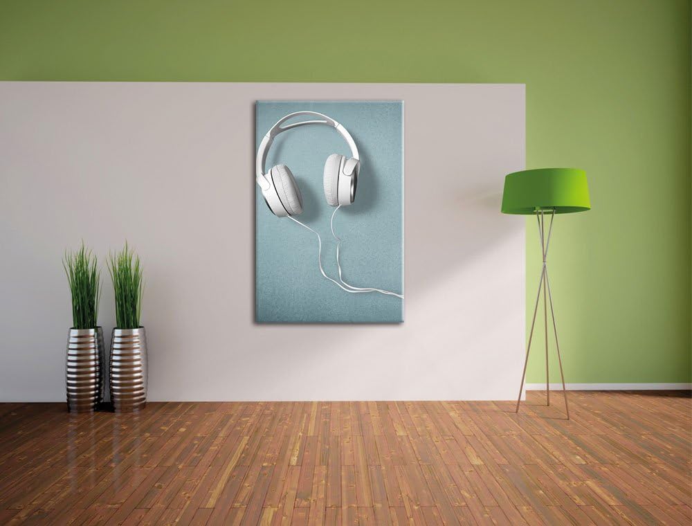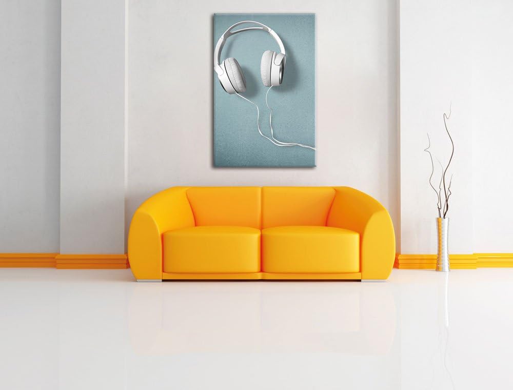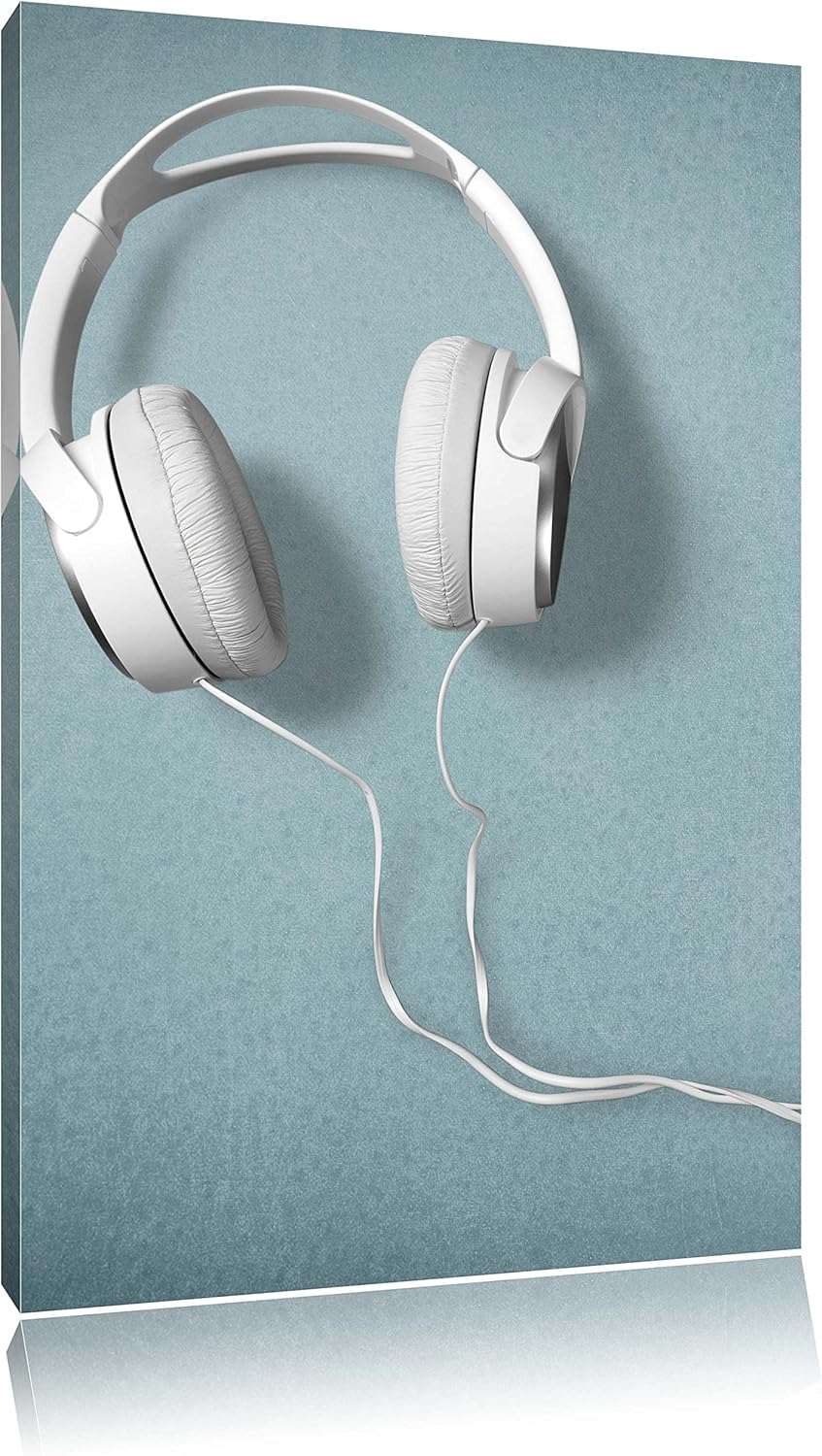 Weisse Kopfhörer, Format: 100x70 auf Leinwand, XXL riesige Bilder fertig gerahmt mit Keilrahmen, Kun