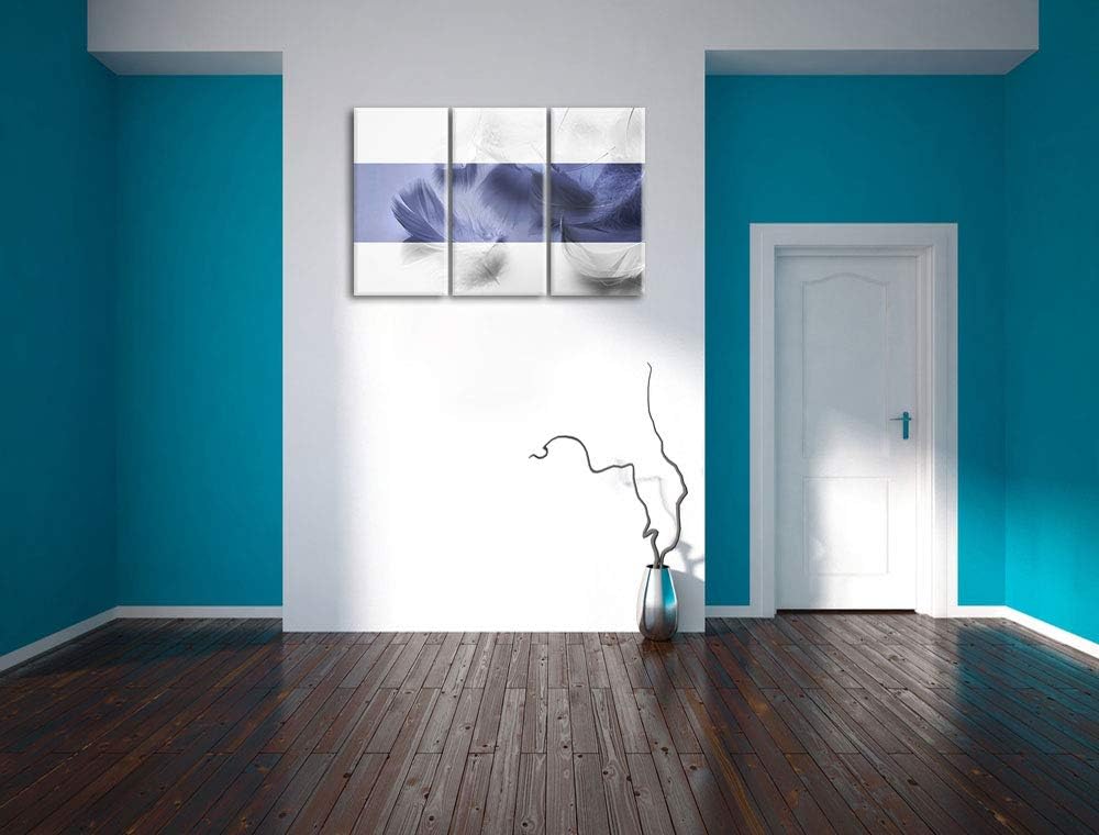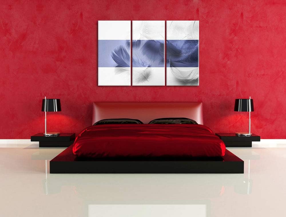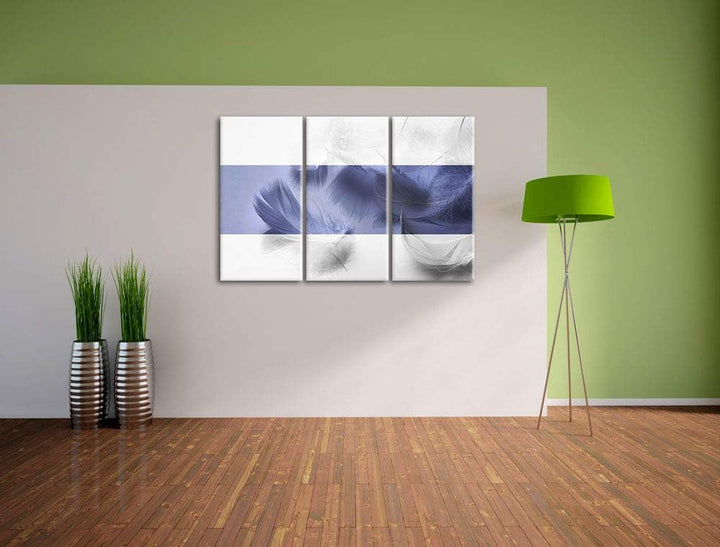 Weisse Federn schwarz/weiss 3-Teiler Leinwandbild 120x80 Bild auf Leinwand, XXL riesige Bilder ferti