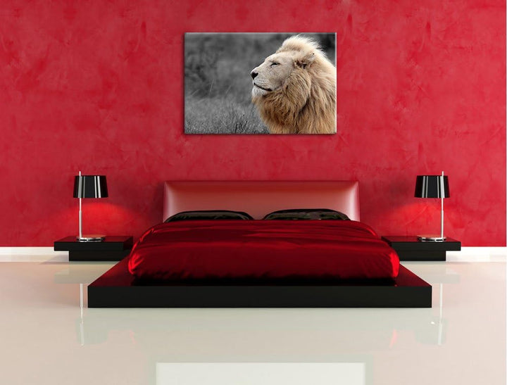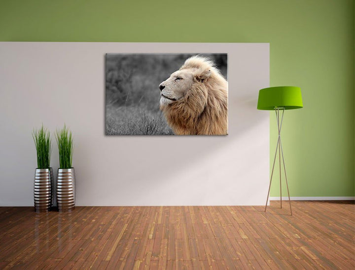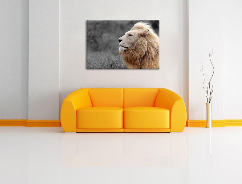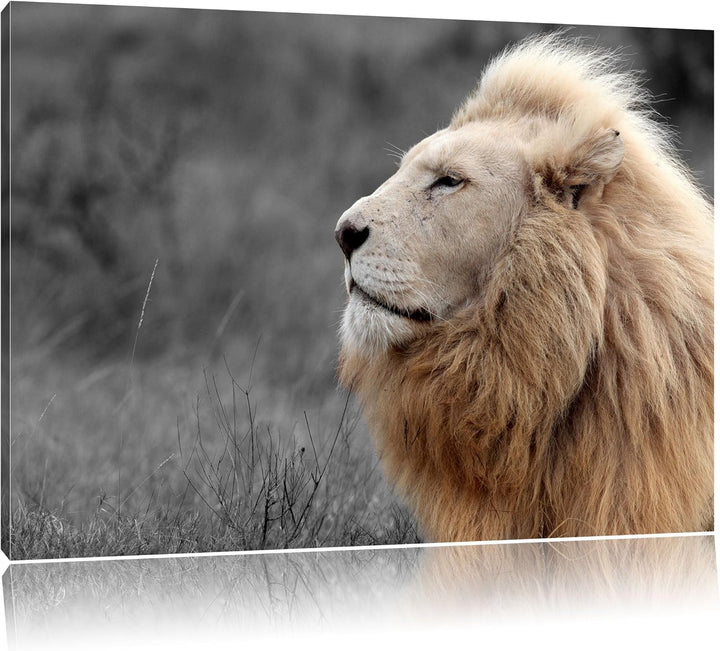 Weisser majestätischer Löwe in der Savanne schwarz/weiss Format: 100x70 auf Leinwand, XXL riesige Bi