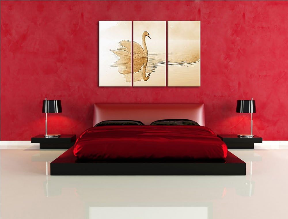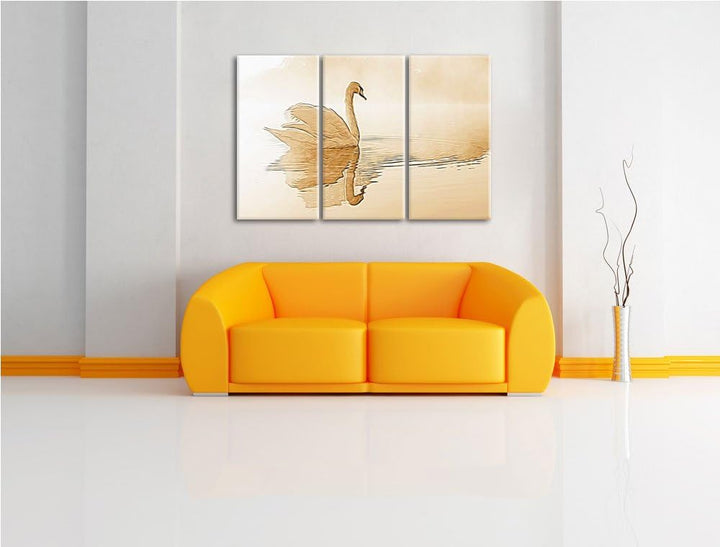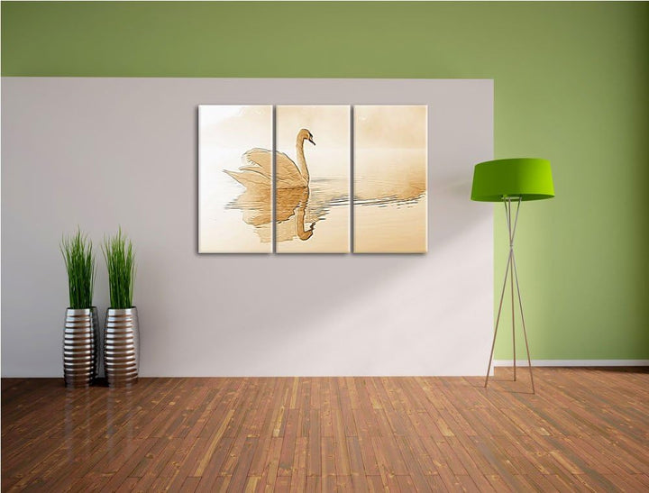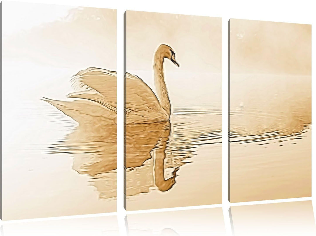 Weisser Schwan im Morgennebel Spezial 3-Teiler Leinwandbild 120x80 Bild auf Leinwand, XXL riesige Bi