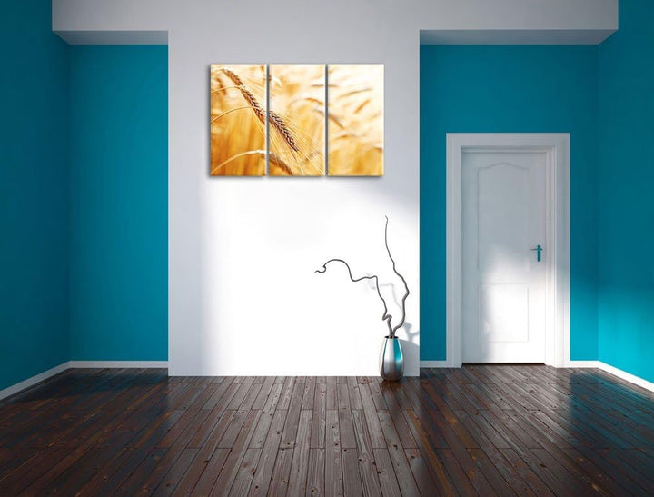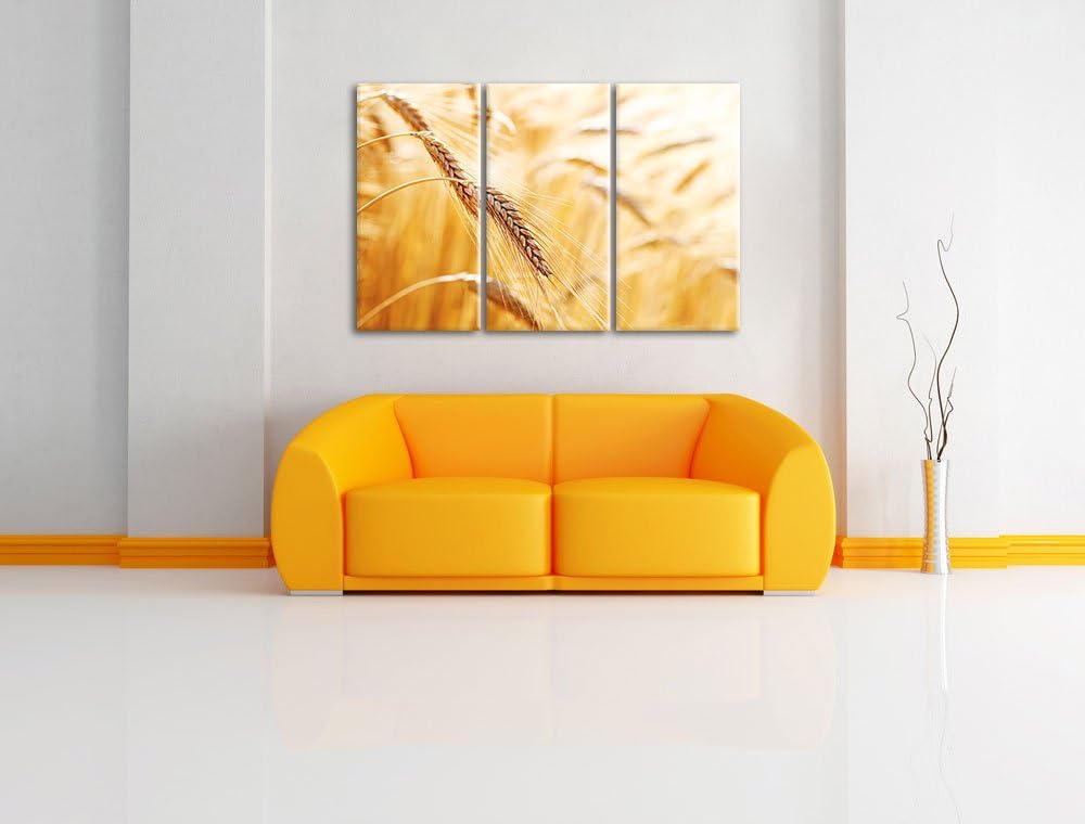 Weizen auf dem Feld als 3-Teiler Leinwandbild 120x80 Bild auf Leinwand, XXL riesige Bilder fertig ge