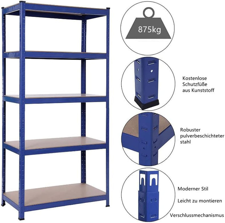 • 【Robust & Langlebig】 5-Tier-Bücherregal aus hochwertigem, stabilem Stahl und MDF-Platte, jede Stufenlast 175 kg, das gesamte Regal hat eine maximale Kapazität von 875 kg.