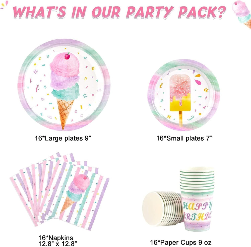 - Jeder Anlass - So leckeres Eis und Eislutscher bekommen Sie. Perfekt für Geburtstag, Familienessen, Eisparty und jede Feier. Sie würden 64 Stück (einschliesslich Teller Servietten und Tassen) bekommen, es kann für 16 Gäste dienen.