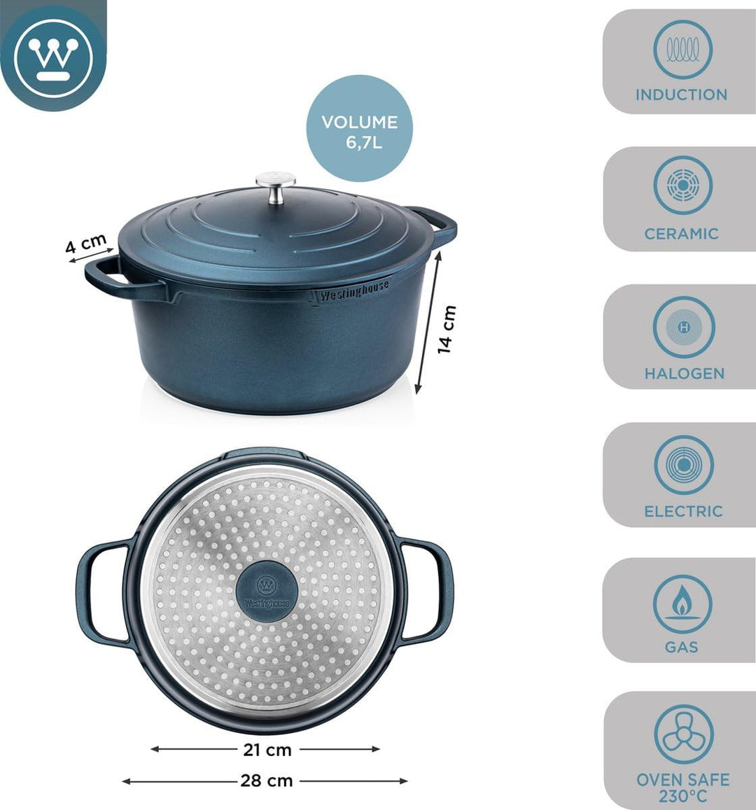 - ✅ LEICHT & SCHNELL ERHITZT: Gegossenes Aluminium erhitzt sich 3x schneller als gegossenes Eisen und wiegt auch nur halb so viel. Die Dichte von Aluminium macht der Bräter extrem leicht und gleichzeitig robust – perfekt für einen einfachen Umgang in