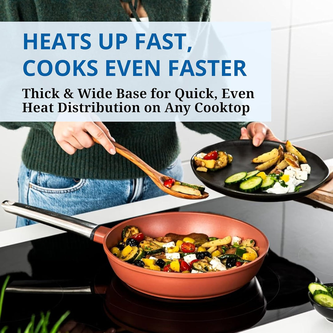 - HOCHWERTIGE MATERIALIEN: Neben der 3-lagigen Beschichtung, werden die Pfannen aus Aluminium gefertigt, sodass sie durch Ihren robusten Aufbau und Langlebigkeit überzeugen