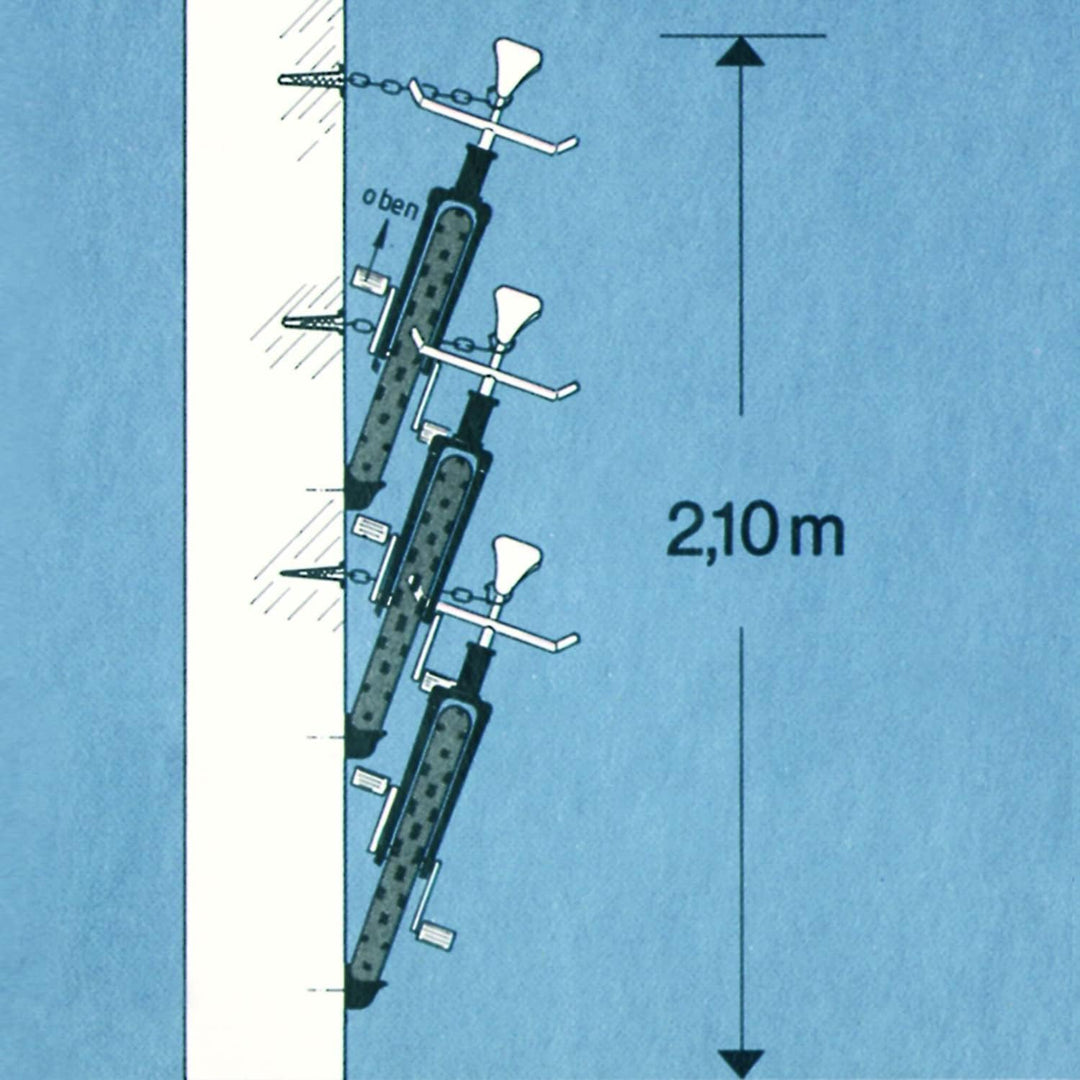 - Mehr Platz im Keller oder in der Garage: bei einer Wandhöhe von 2,1 m sind bis zu 3 Fahrräder übereinander möglich