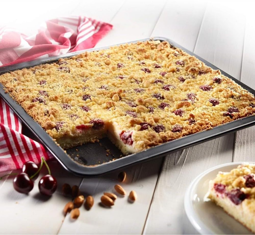 - Backblech mit 4 cm hohem Rand zum Backen von süssen und herzhaften Blechkuchen, Pizzen oder Aufläufen