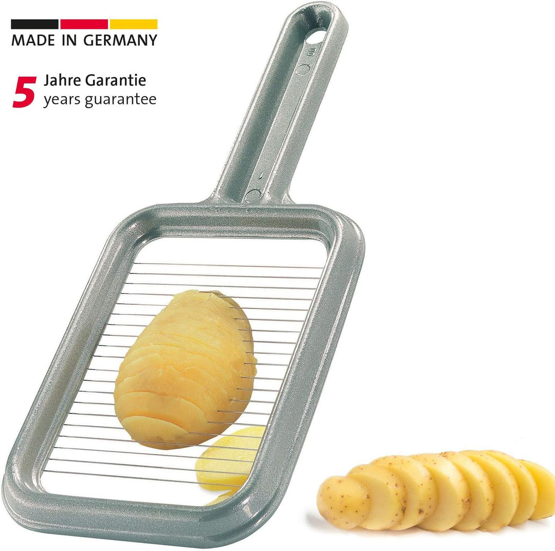 - Produkt 2: Effektiver, sehr stabiler Pellkartoffel- und Mozzarellaschneider aus Aluminium, zum Schneiden 5 mm dünner und gleichmässiger Scheiben