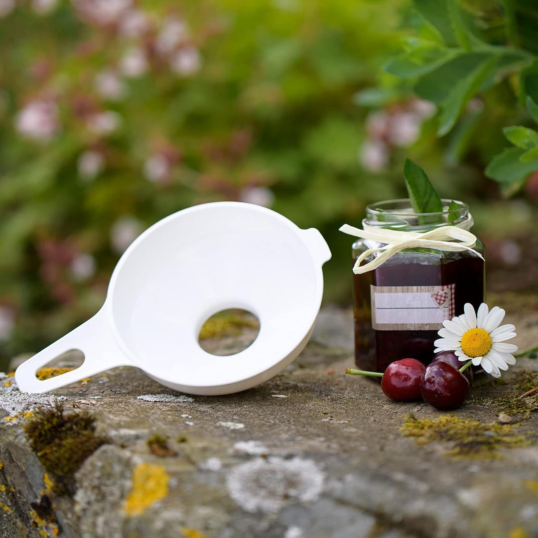 - Einmachtrichter, BPA-frei, zum einfachen und schnellen Befüllen von Einmach-/Vorratsgläsern, Flaschen oder Dosen mit Öffnungen von mind. 4,2 cm Durchmesser, für flüssige, zähe und körnig-stückige Lebensmittel geeignet