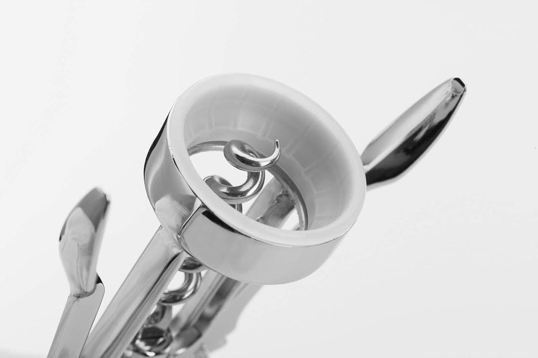 - Einfaches Eindrehen des spindelförmigen Scharfgewindes in den Korken, Müheloses Herunterdrücken der Hebelarme zum vollständigen Entkorken der Flasche, Kein Zerbröseln des Korkens