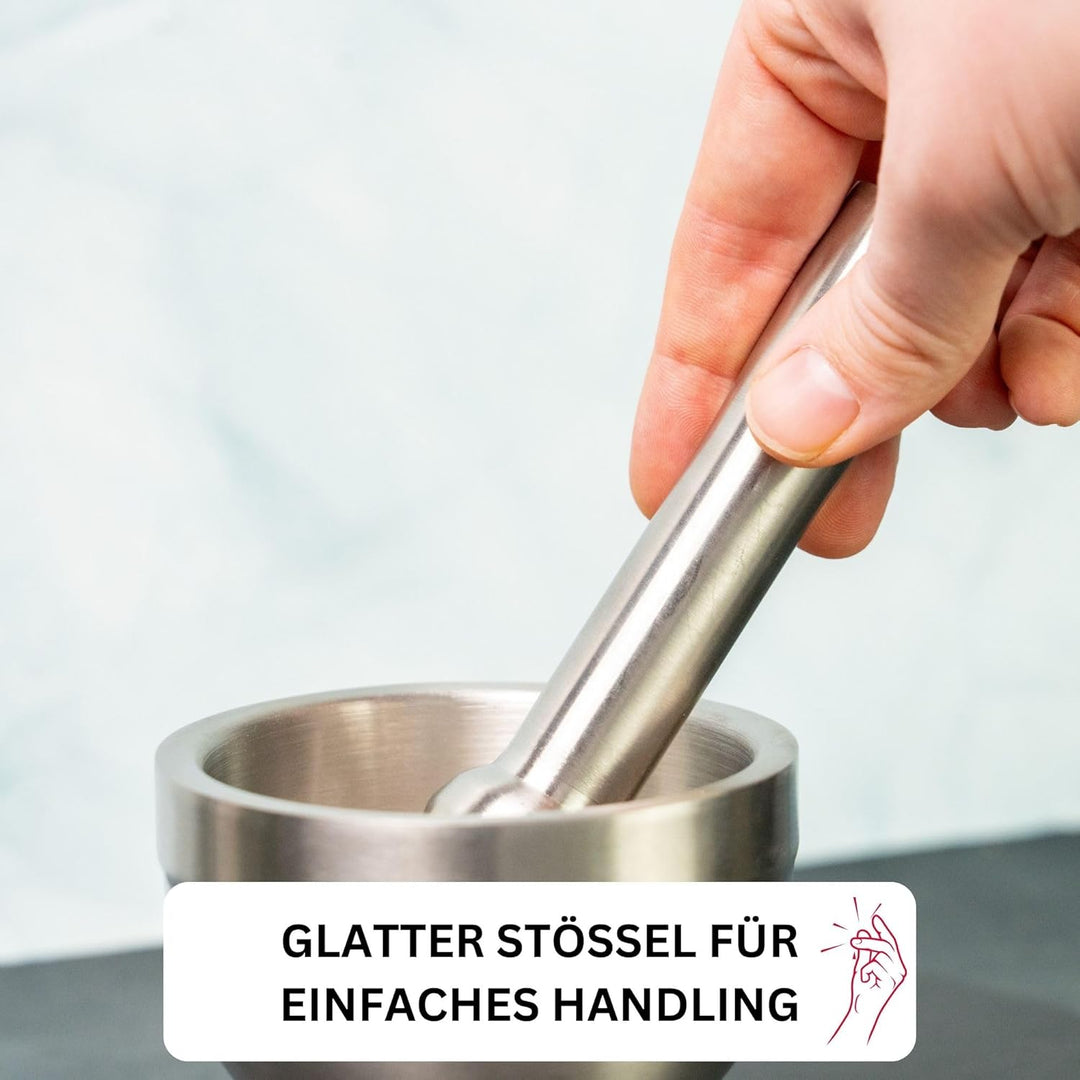 - Edler Mörser inkl. Deckel und Stössel zum leichten Zerstossen und Mahlen von verschiedenen Gewürzen, harten Gewürzkapseln und Kräutern, ideal für die Gastronomie oder private Haushalte
