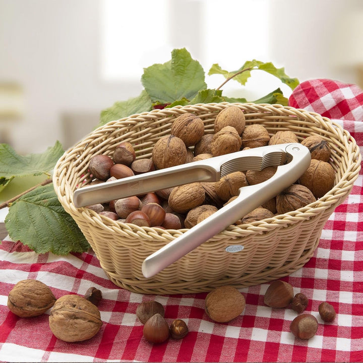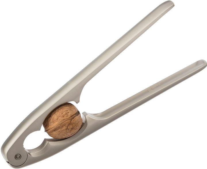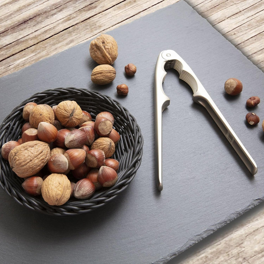 - Edler und hochwertiger Nussknacker aus Zinkdruckguss zum einfachen Aufbrechen von Nussschalen, geeignet für viele Nussssorten, z.B. Hasel-, Para- und Walnüsse sowie Mandeln, automatisches Öffnen des Knackers nach jedem Zudrücken dank Federmechanismus